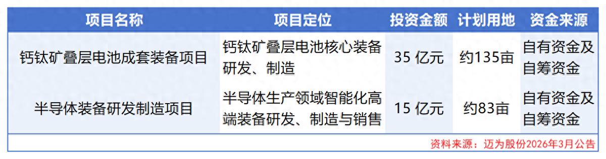 3月6日,迈为股份接连抛出两份投资公告,以50亿元总投资金额敲定了两大项目。