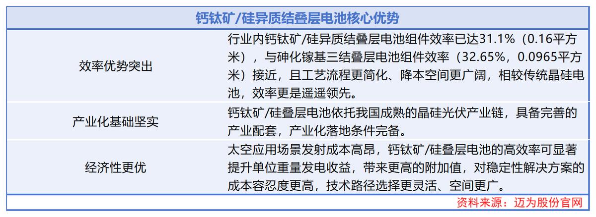 而长期来看,钙钛矿/硅异质结叠层电池效率优势突出,有望成为太空太阳能下一代关键技术。
