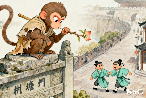 猴子眯起圆溜溜的眼睛,晃了晃毛茸茸的爪子,心里嘀咕:“有意思,这书生身上一股子墨香,哪有半点贼味?”它“嗖”地一下从牌坊上跳下来,正好落在官差面前,张开嘴露出两排尖牙,怪声怪气地喊:“慢着慢着!贫僧——哦不,本猴要替天行道!”