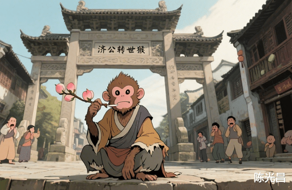 灵隐寺后山坡的老槐树上,住着一只通了人性的石猴,因偷吃了寺里供桌上的仙桃,竟得了些法力。这猴子不学好,偏偏迷上了香客口中济公活佛的故事,从此天天披着偷来的破袈裟,拿着根啃剩的桃枝当禅杖,满杭州城装疯卖傻,自称 “济公转世猴”。