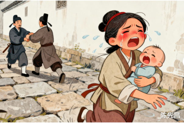 把桃枝当牙签剔牙,忽闻一阵哭天抢地的声响。只见一个穿青布长衫的书生,被两个官差扭着胳膊往前走,身后跟着个哭红了眼的妇人,怀里还抱着个哇哇直哭的娃娃。