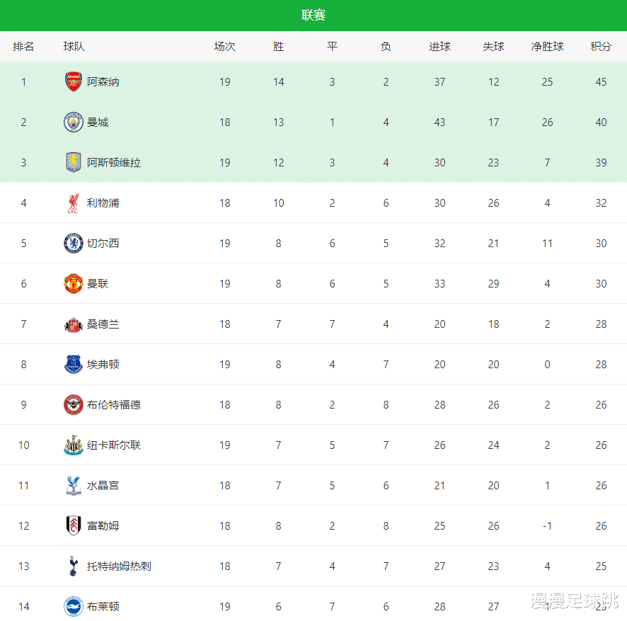 随着阿森纳4-1维拉+曼联1-1爆冷!英超最新积分榜:切尔西掉队