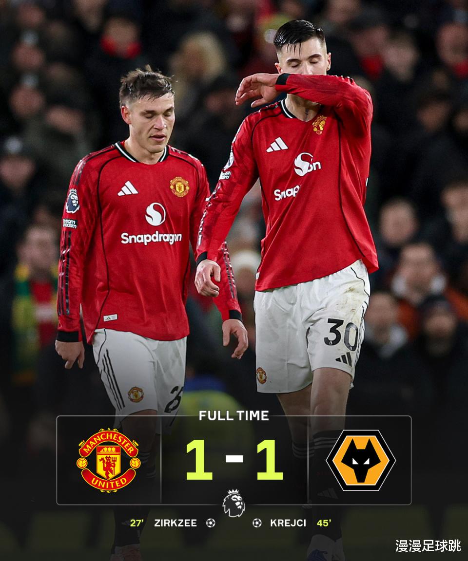 但上半场末端,狼队通过角球组织攻势,克雷伊奇在曼联后防疏漏下破门扳平,1-1!