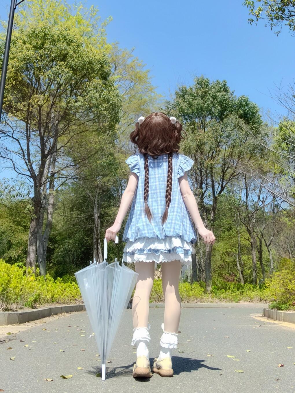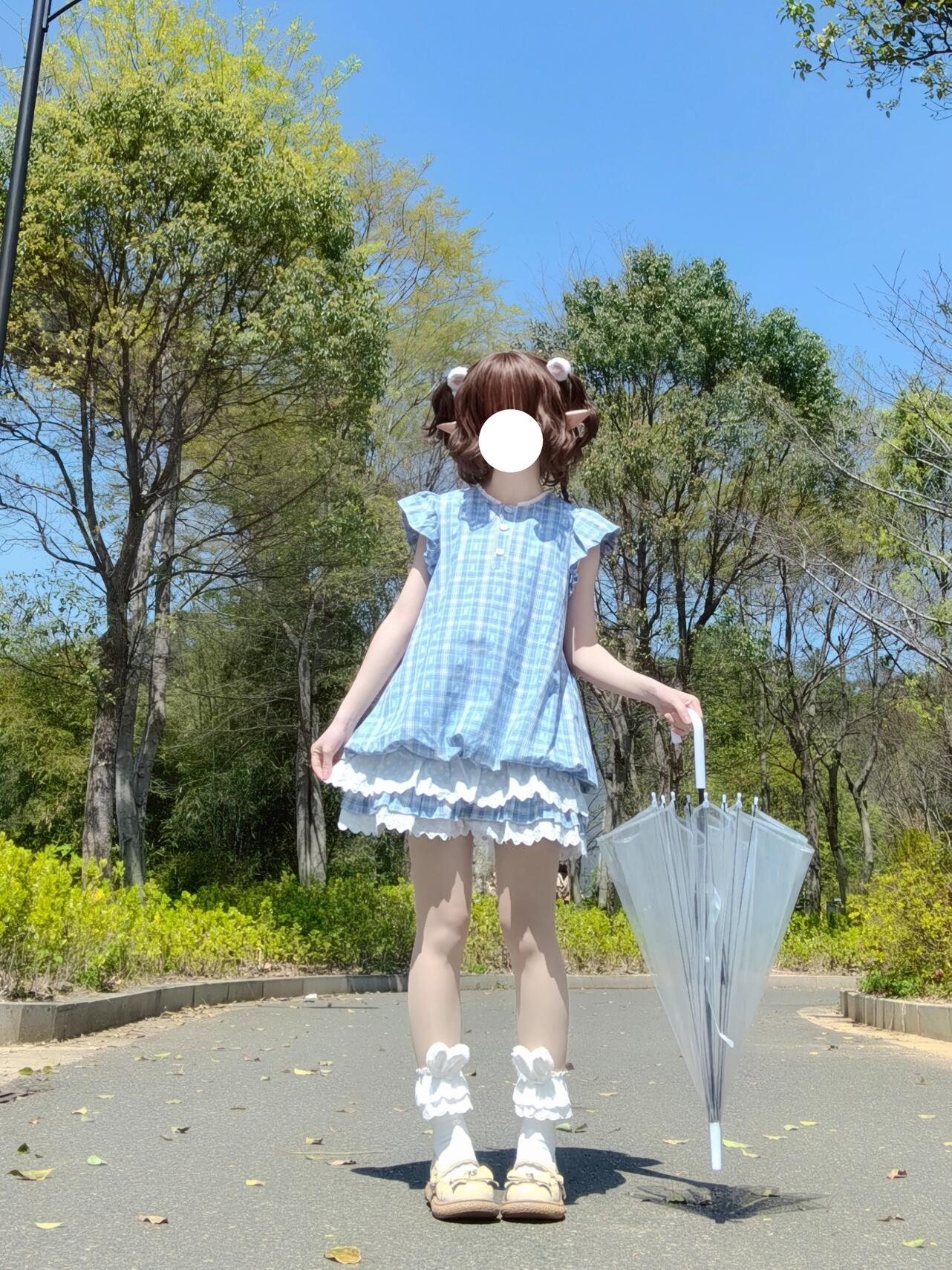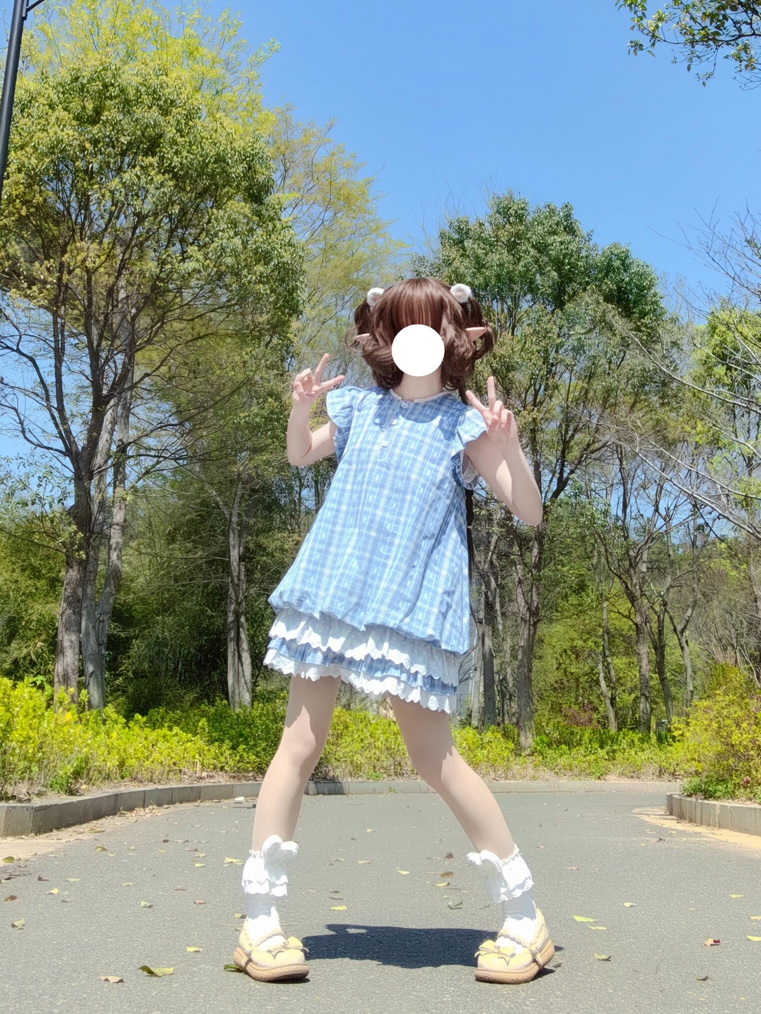法式气质蓝色格子连衣裙子女初夏季穿搭