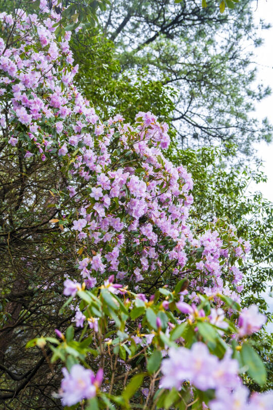 • 打卡点1:狮子峰:缆车中站旁的狮子峰,是观赏杜鹃花的绝佳地,野生杜鹃肆意绽放,红的似火,粉的如霞,漫山遍野,充满生机,每一处角落都能拍出绝美大片!