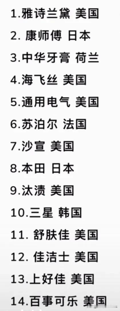 没想到中华牙膏竟然是荷兰的? 虽然咱老百姓什么实惠买什么,但是中美贸易战这关键时期,我们没有能力开辟新航道,也没有余额救市,但是我们可以支持国货,爱国家就是爱自己,以下这些牌子咱可千万不能买! 没有这些东东,我们一样过日子! 我们不care!