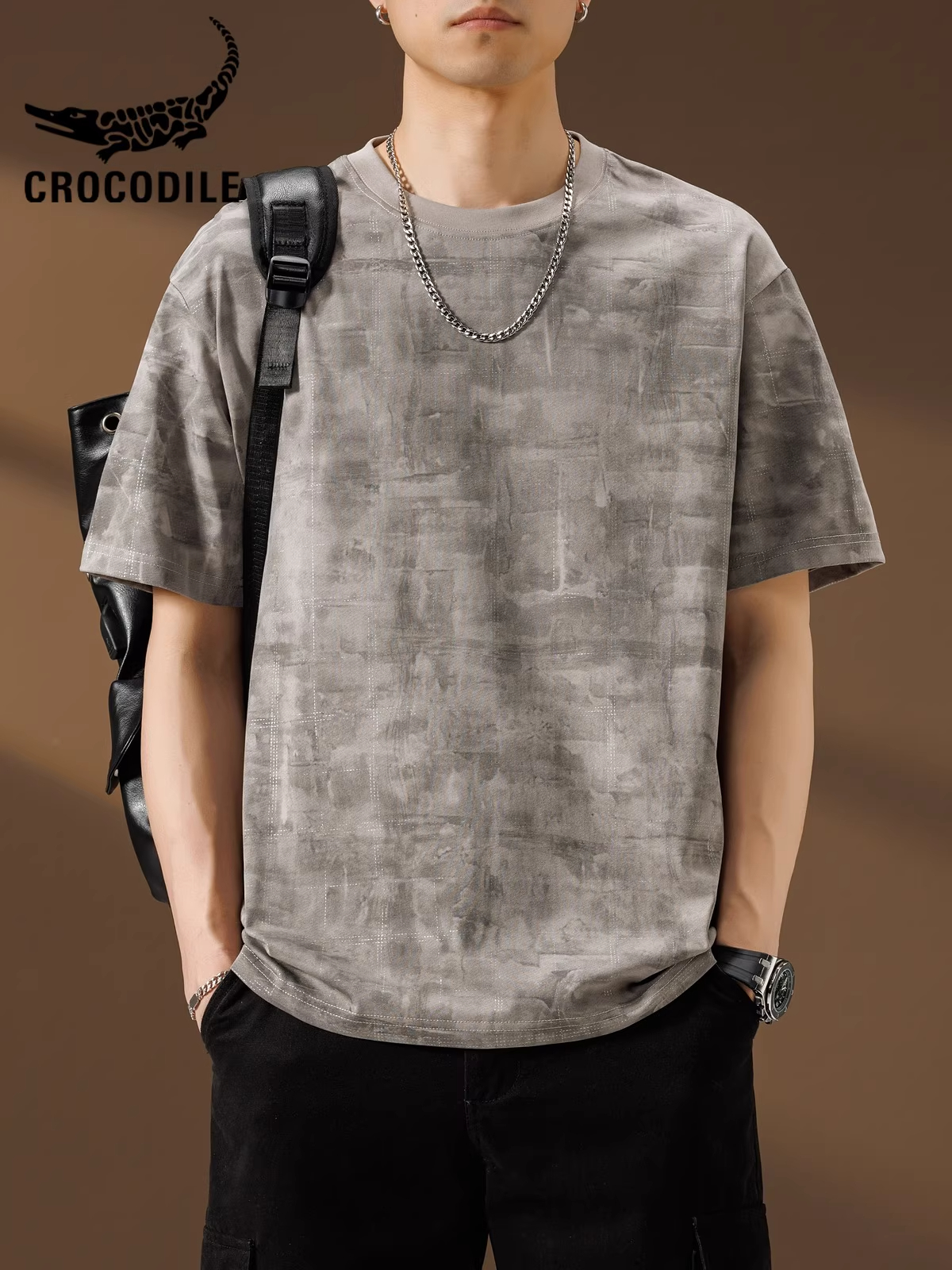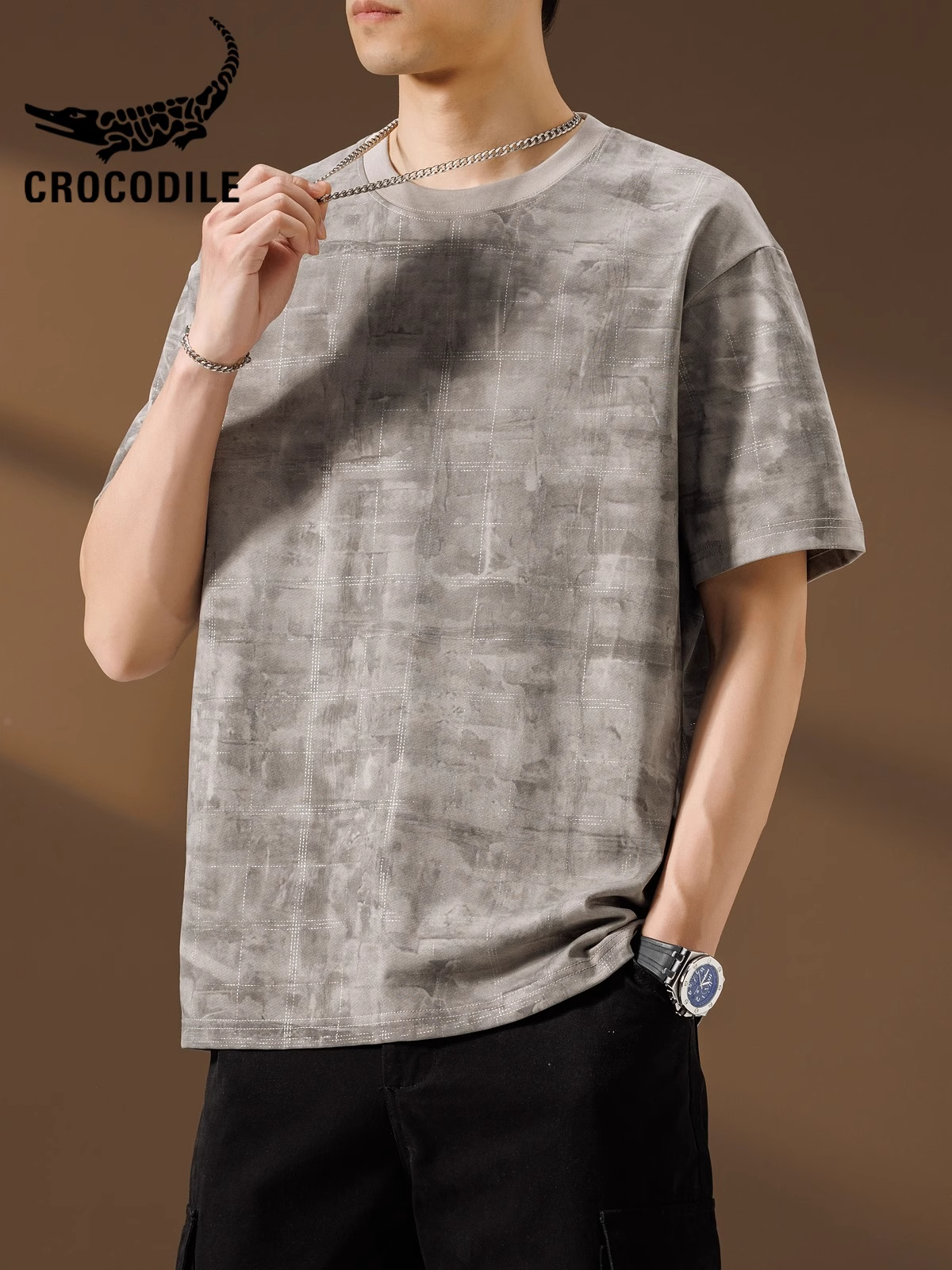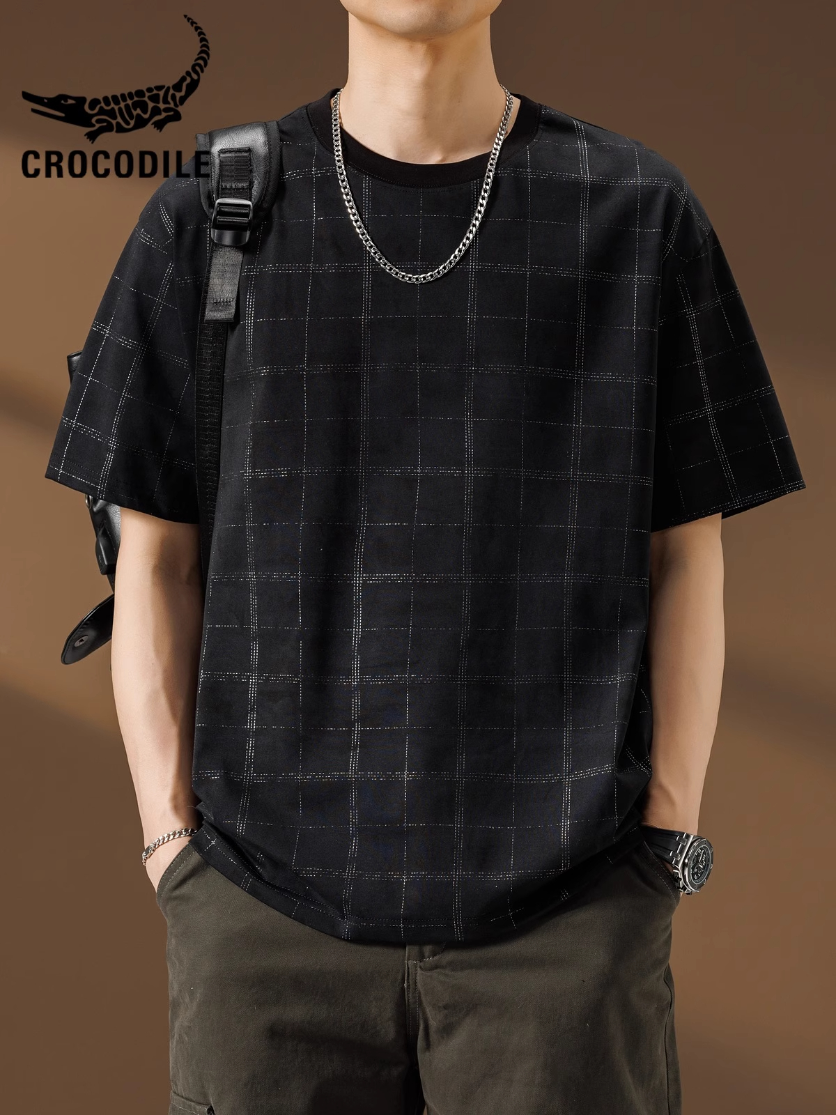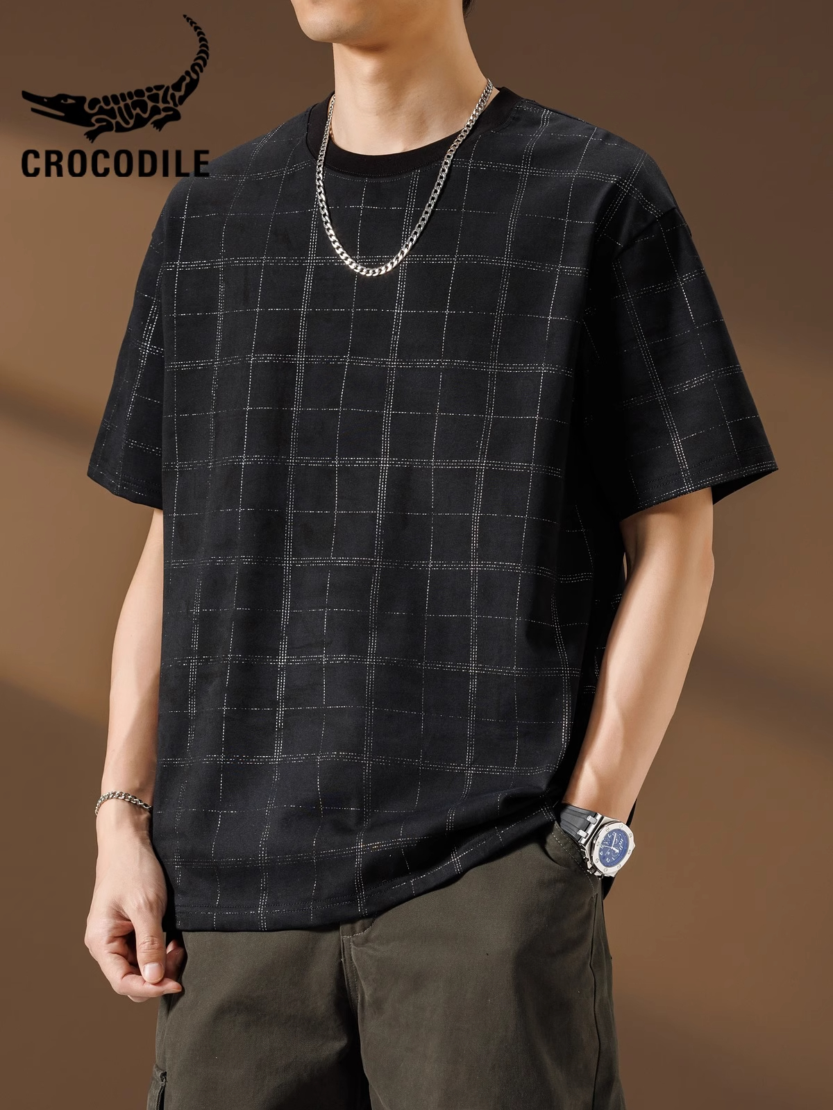 鳄鱼恤短袖潮牌设计感格子t恤男