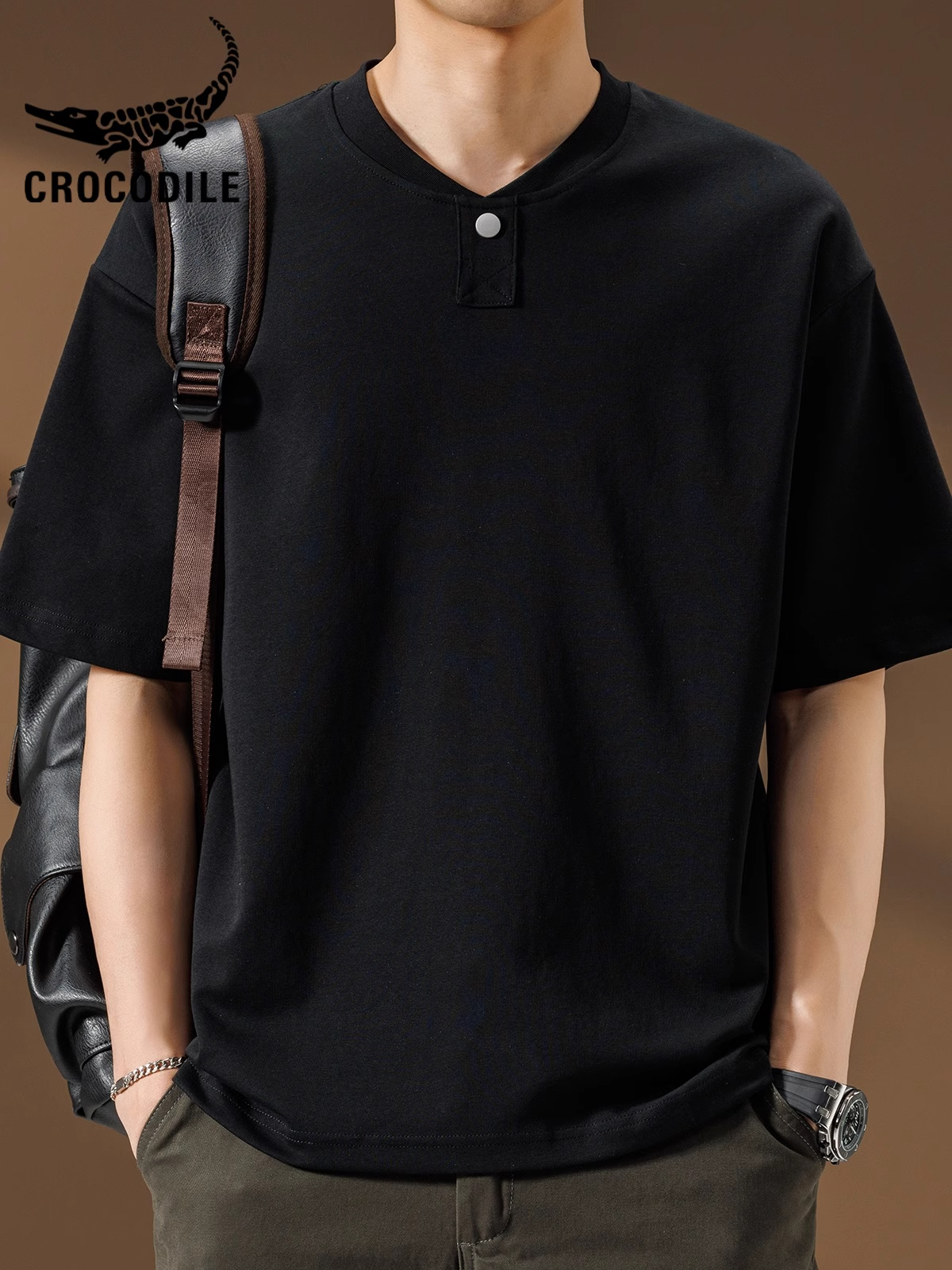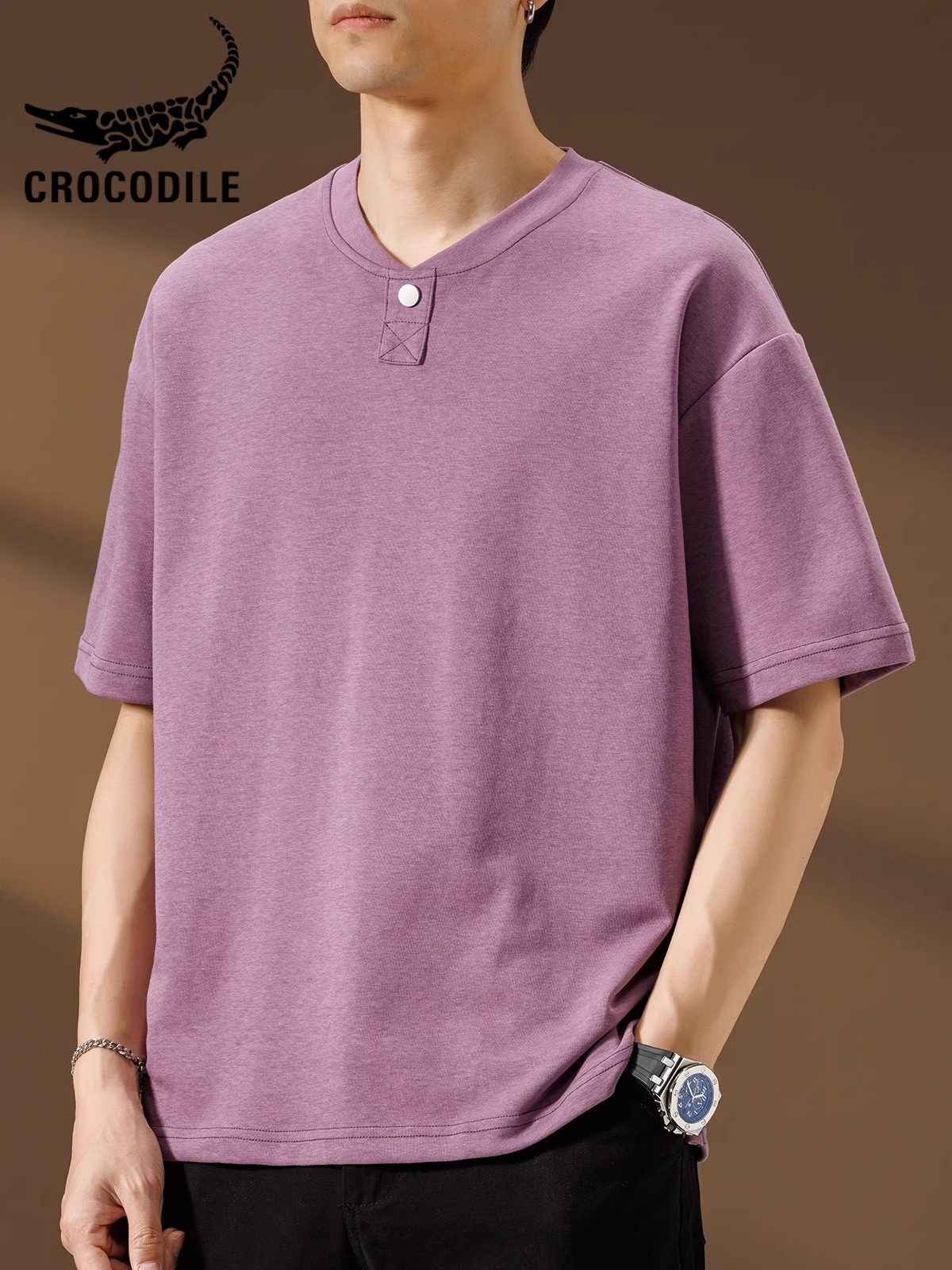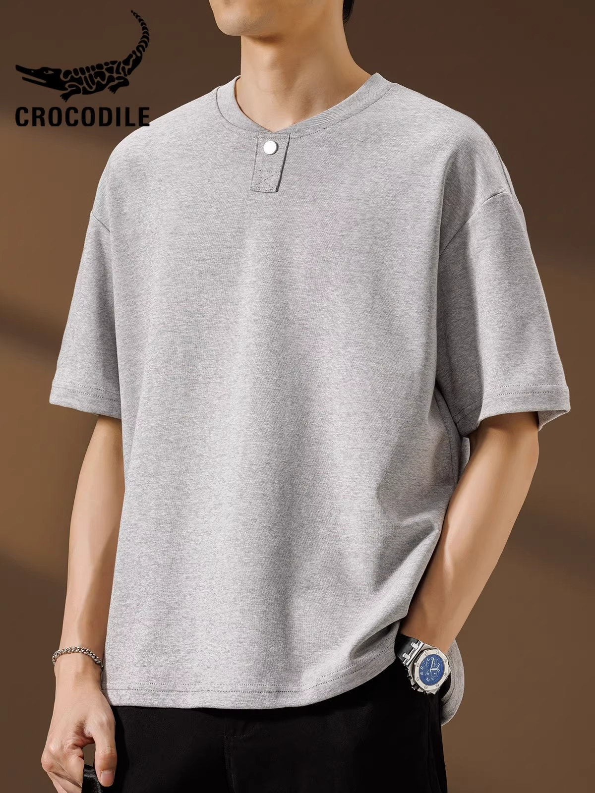 鳄鱼恤亨利领短袖高级感t恤衫男