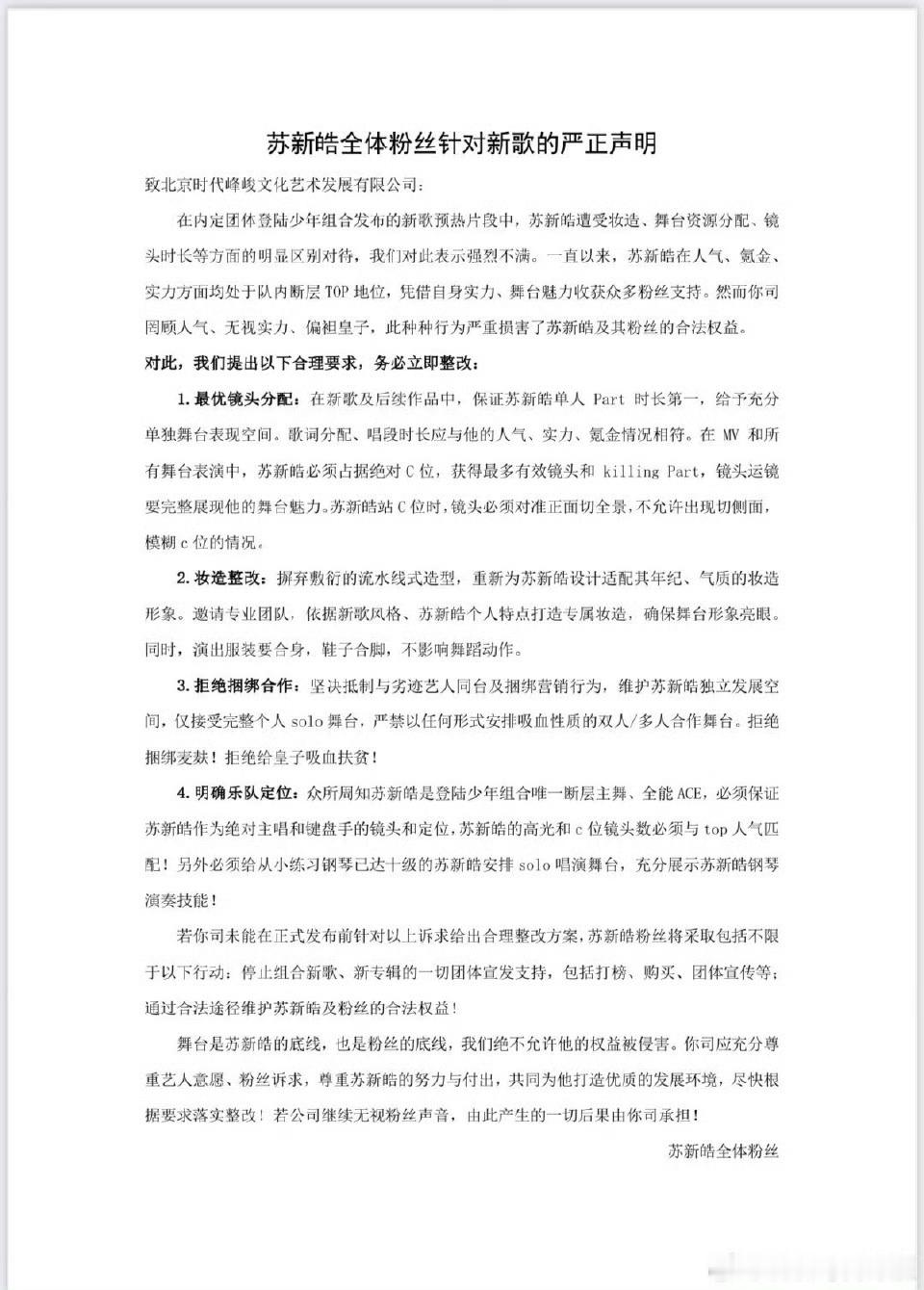 朱志鑫和苏新皓粉丝对时代峰峻提出了要求,来看看