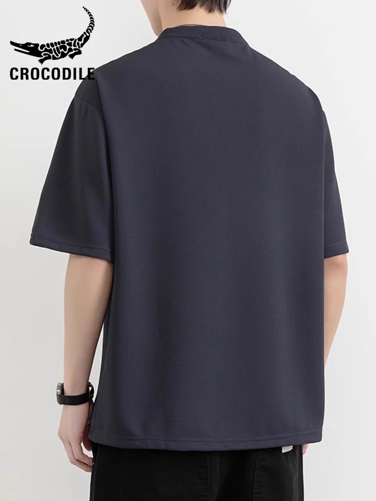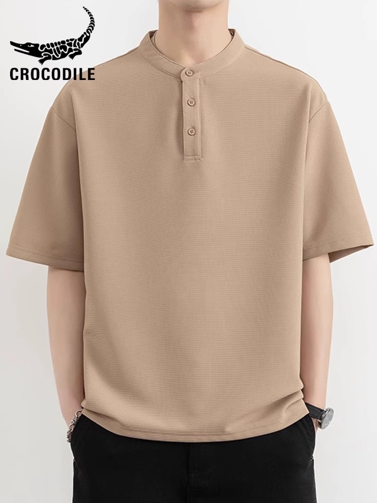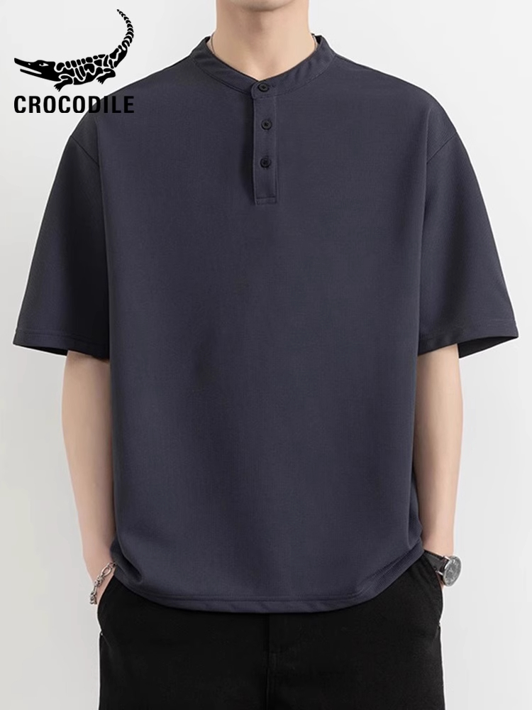 鳄鱼恤中式半袖衫亨利领短袖t恤男