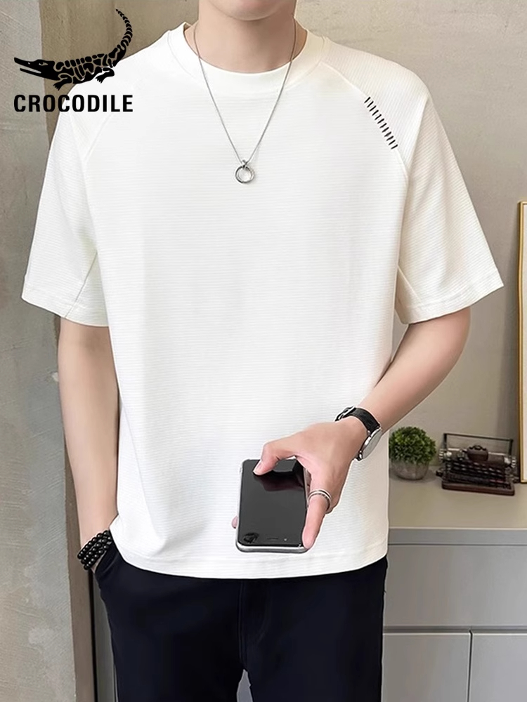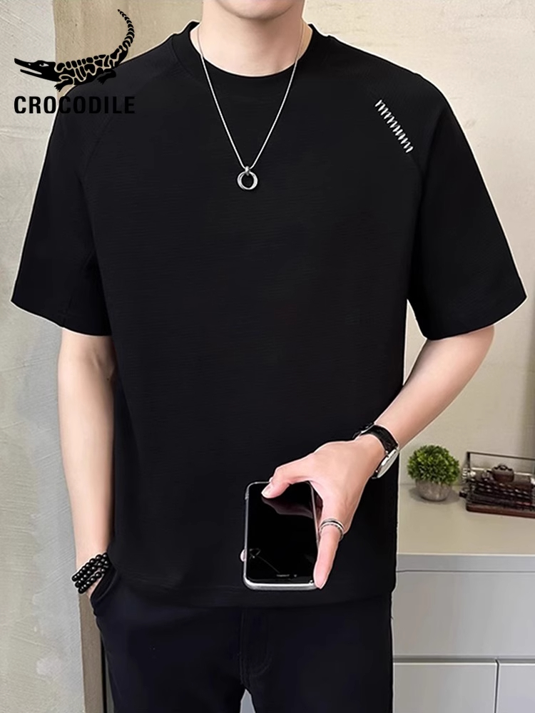 鳄鱼恤丝光棉宽松休闲短袖T恤男