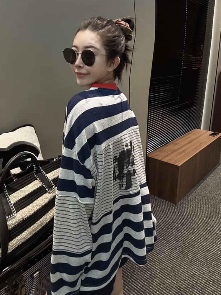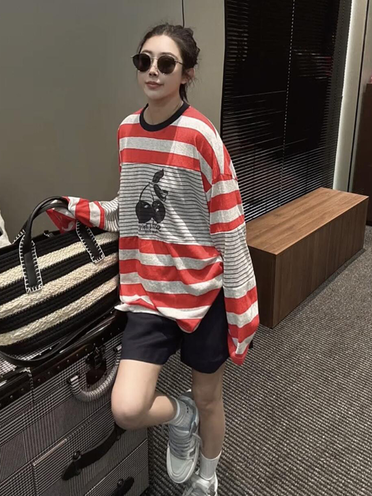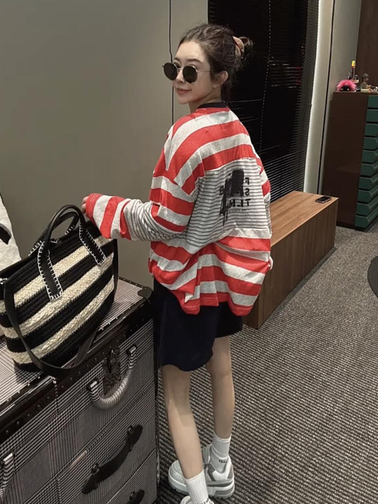 独特超好看小上衣设计感小众条纹防晒T恤女