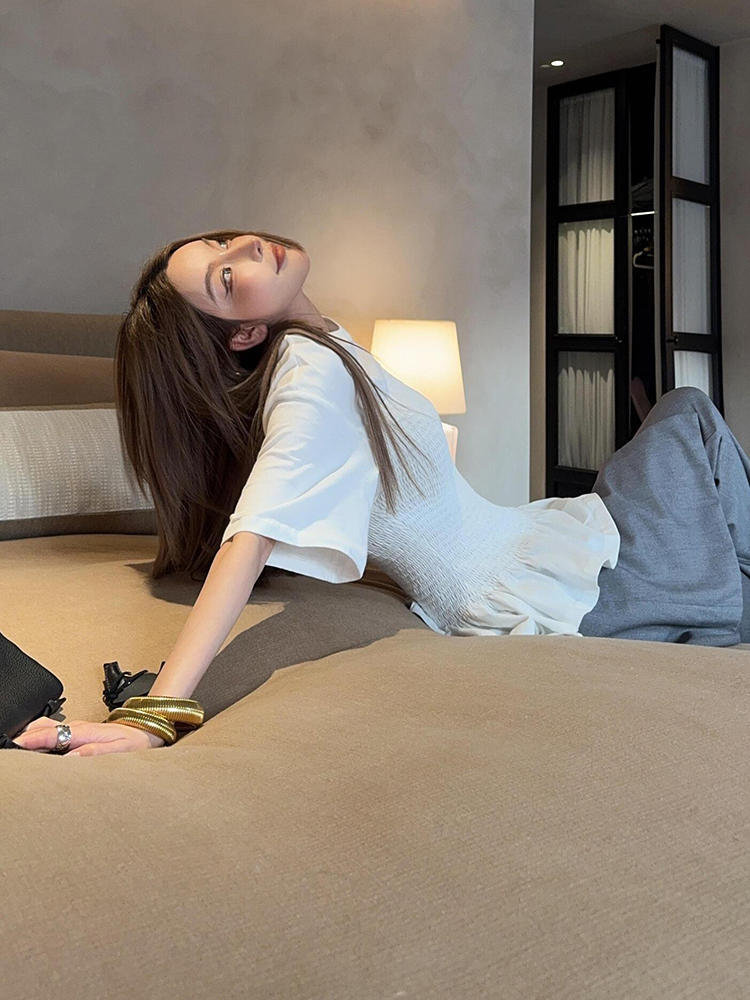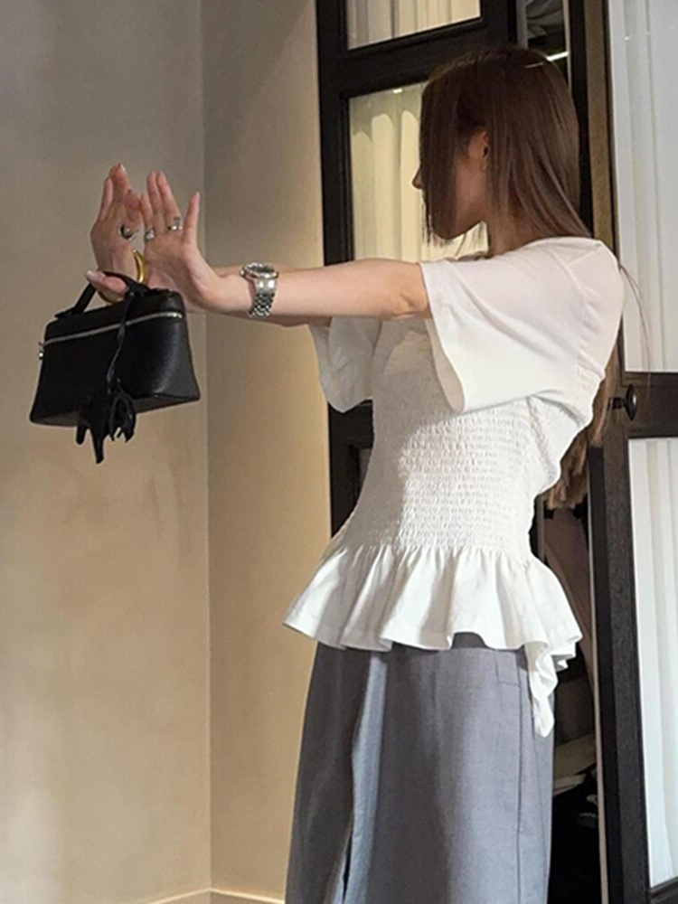2025夏季超火减龄独特超好看单穿上衣小众不撞款掐腰白色短袖t恤