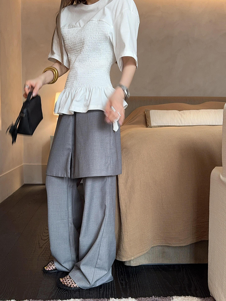 超好看单穿上衣小众不撞款掐腰白色短袖t恤