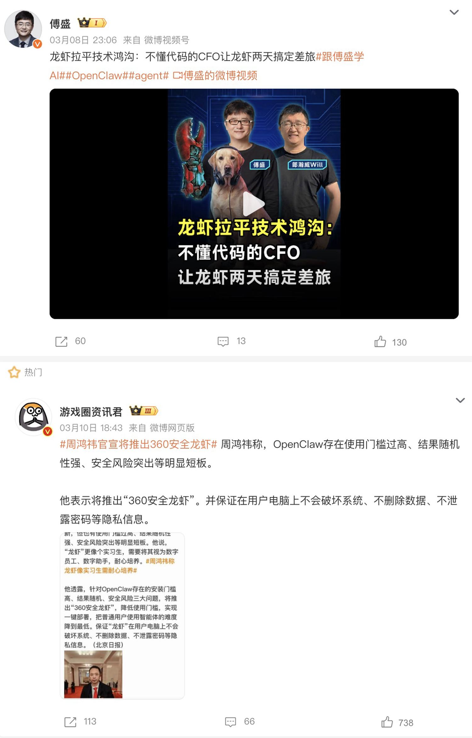 如今仅两年多后再度撕破脸,表面导火索疑似与最近火爆的“AI龙虾”竞争有关。两人公司都在这个赛道快速推出类似产品,线下活动、线上互怼不断,流量和用户争夺激烈。
