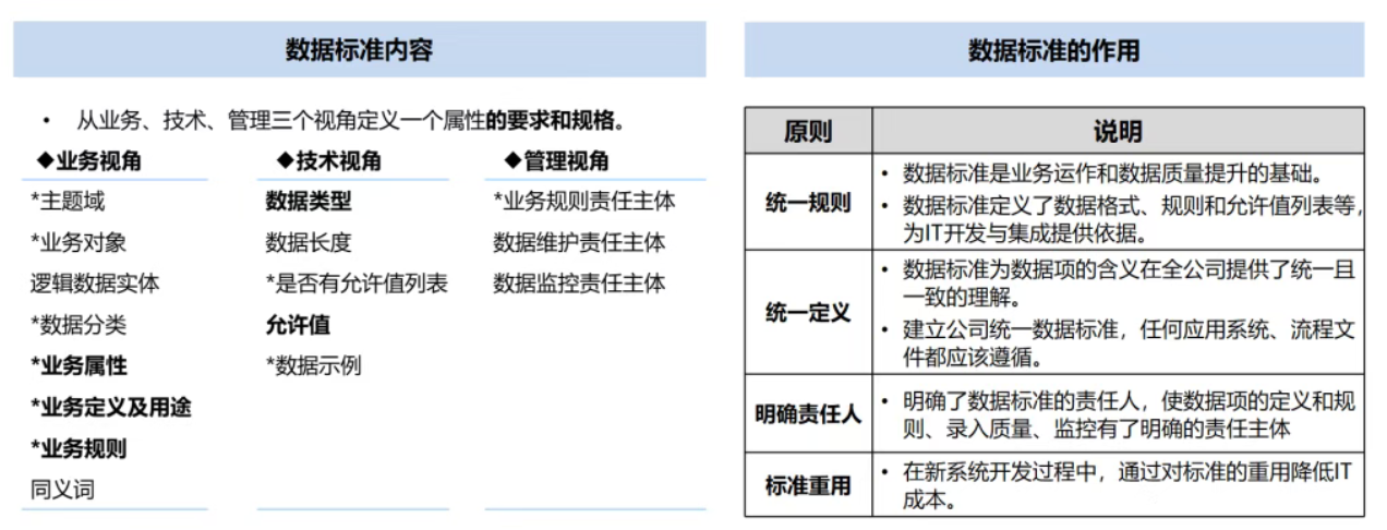 数据标准从业务、技术、管理三个视角来定义一个属性的要求和规格。