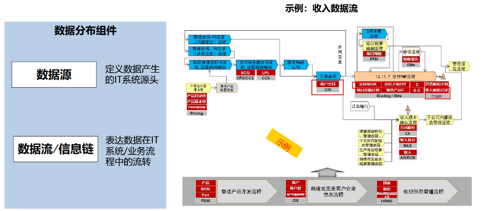 数据流:描述某一数据在应用系统中如何被创建、读取、更新、删除(CRUD),主要用于数据质量的根因分析,指导系统集成。