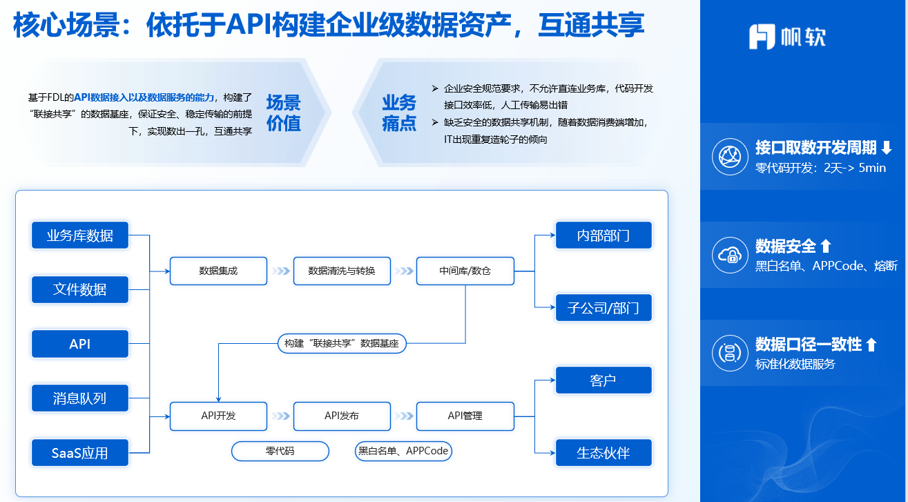 定义单一数据源,通过数据服务化,实现同源共享,保证跨流程、跨系统的数据一致。