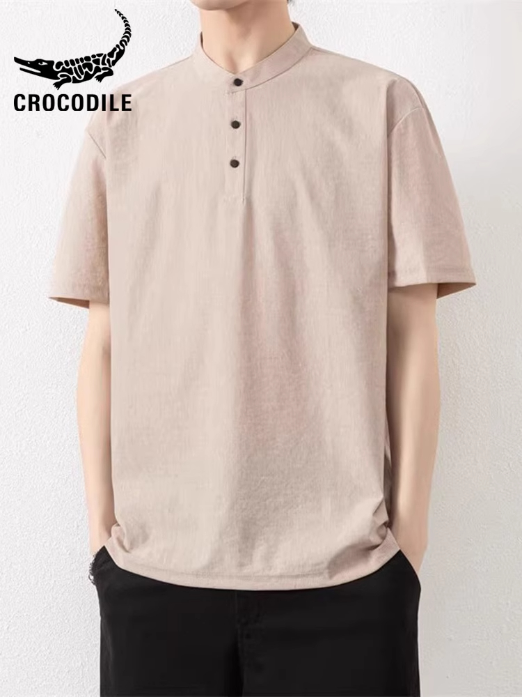 鳄鱼恤凉感中国风亨利领短袖t恤男