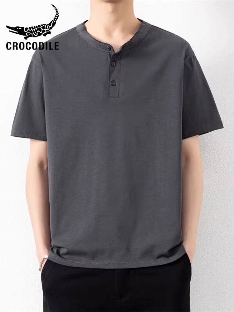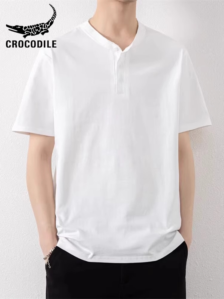 鳄鱼恤纯棉短袖亨利领休闲百搭t恤