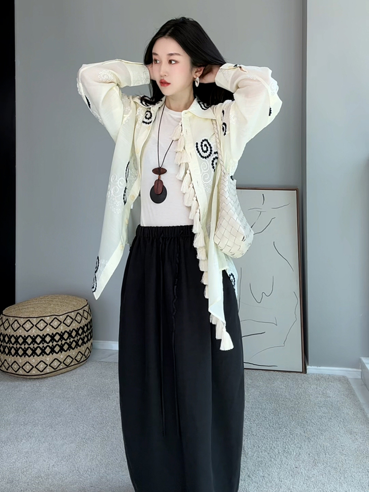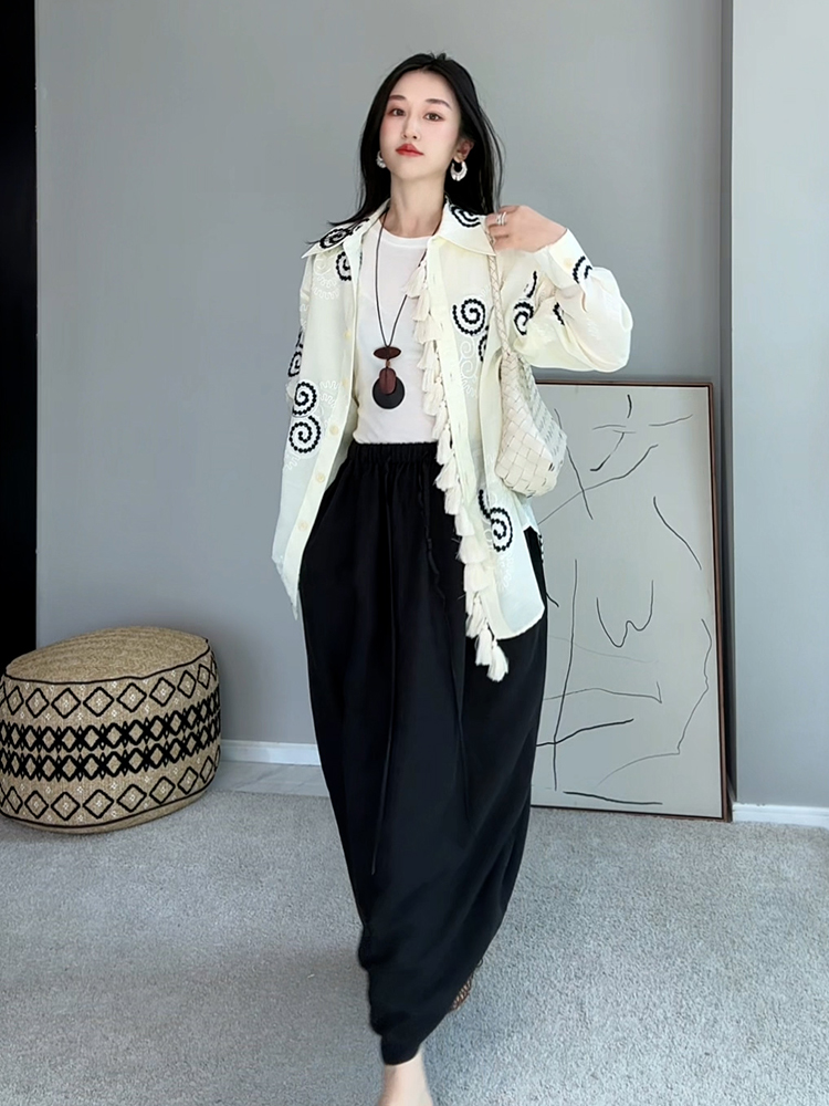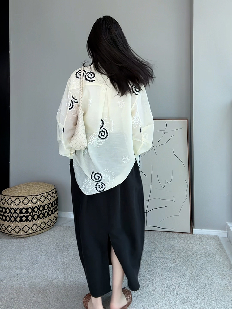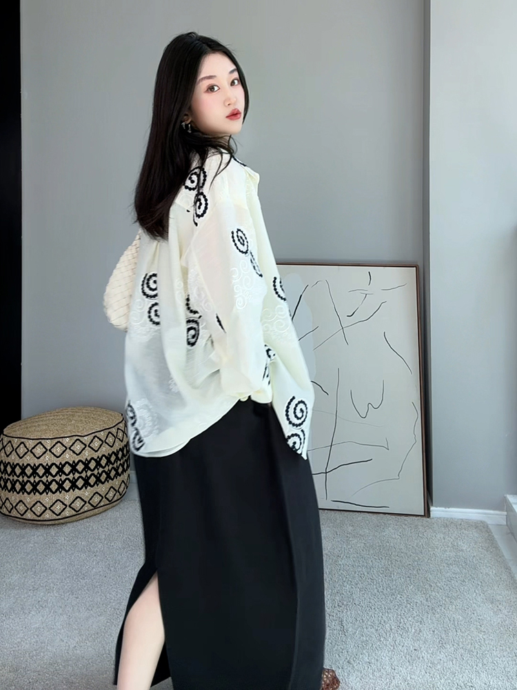 高级感轻奢减龄洋气宽松白色印花衬衫