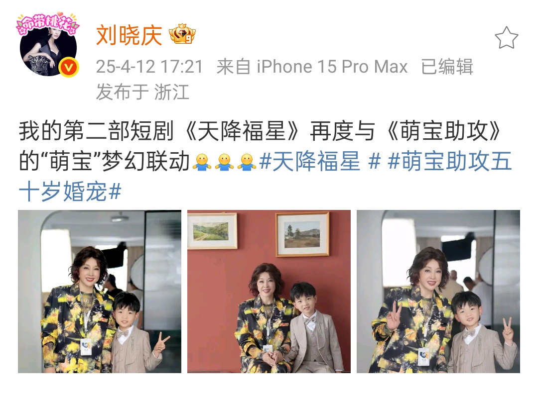 刘晓庆宣布:她的第二部短剧《天降福星》再度与《萌宝助攻》中的“萌宝”合作,看来这个小演员非常受导演和刘晓庆老师的喜爱了。