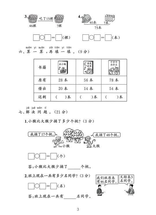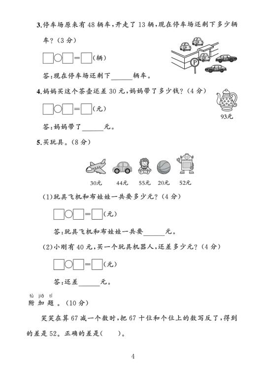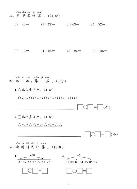 北师大 一年级下册数学 第五单元 试卷 电子版可打印 单元测试 一年级