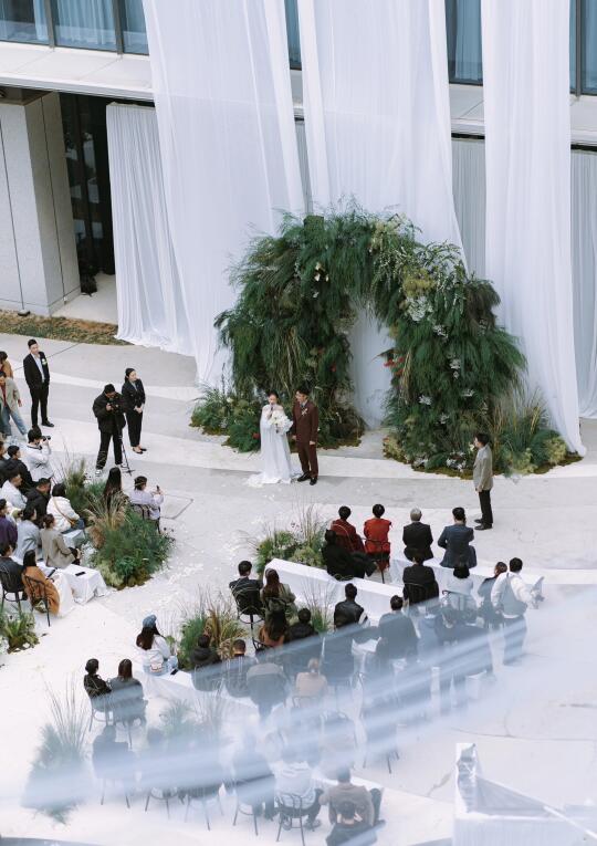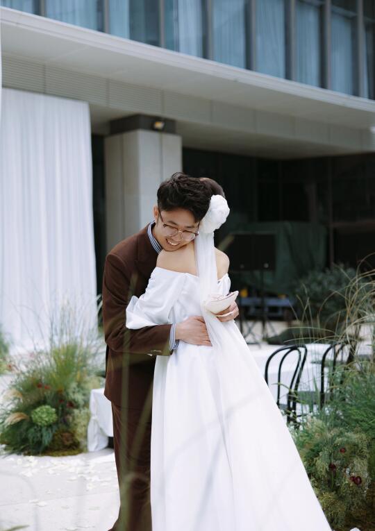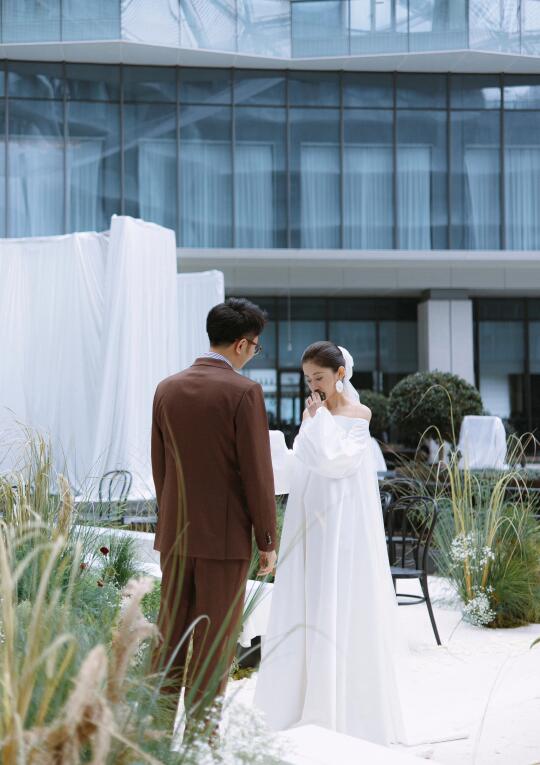 嫁给你,我真的很开心。未来的日子,希望我们在未知的旅途中携手共行。在每个共度的时刻里彼此照亮。希望我们继续勇敢,比肩而立,成为更好的大人。前路漫漫,愿我们一起抵达那些前所未见的海港。