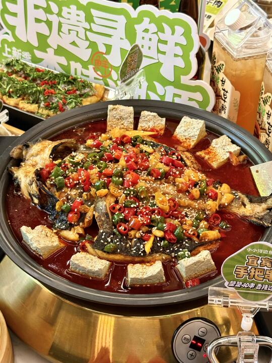 每次想吃鱼都直奔这家!! 刚到饭点就来了 店里座无虚席!! 贵州酸汤锅底叉尾鮰鱼 一上桌就香气扑鼻 活鱼现做 鱼肉很嫩 新鲜又入味 非遗手工黑豆花浸满汤汁后 配上大米饭 真的嘎嘎下饭 还有宜宾手把串 5荤3素 整整40串 超丰富 麻麻辣辣的 超适合和朋友一起喝啤酒 一起撸串!! 他们家人均50就能吃饱又吃好 下班速和朋友们约起来吧~~