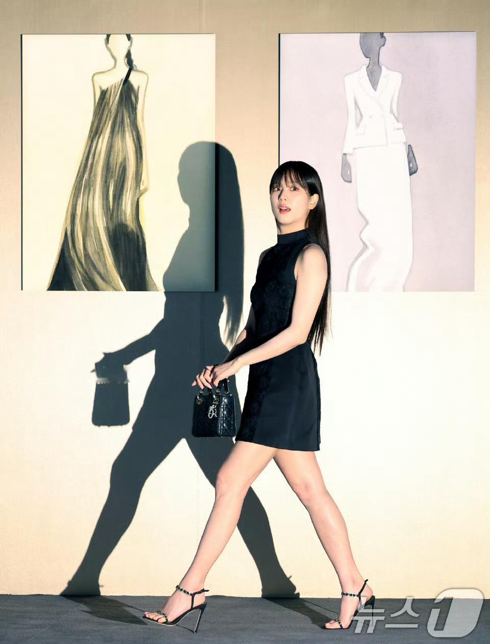 金智秀齐刘海黑短裙连影子都这么美,不愧是dior公主金智秀