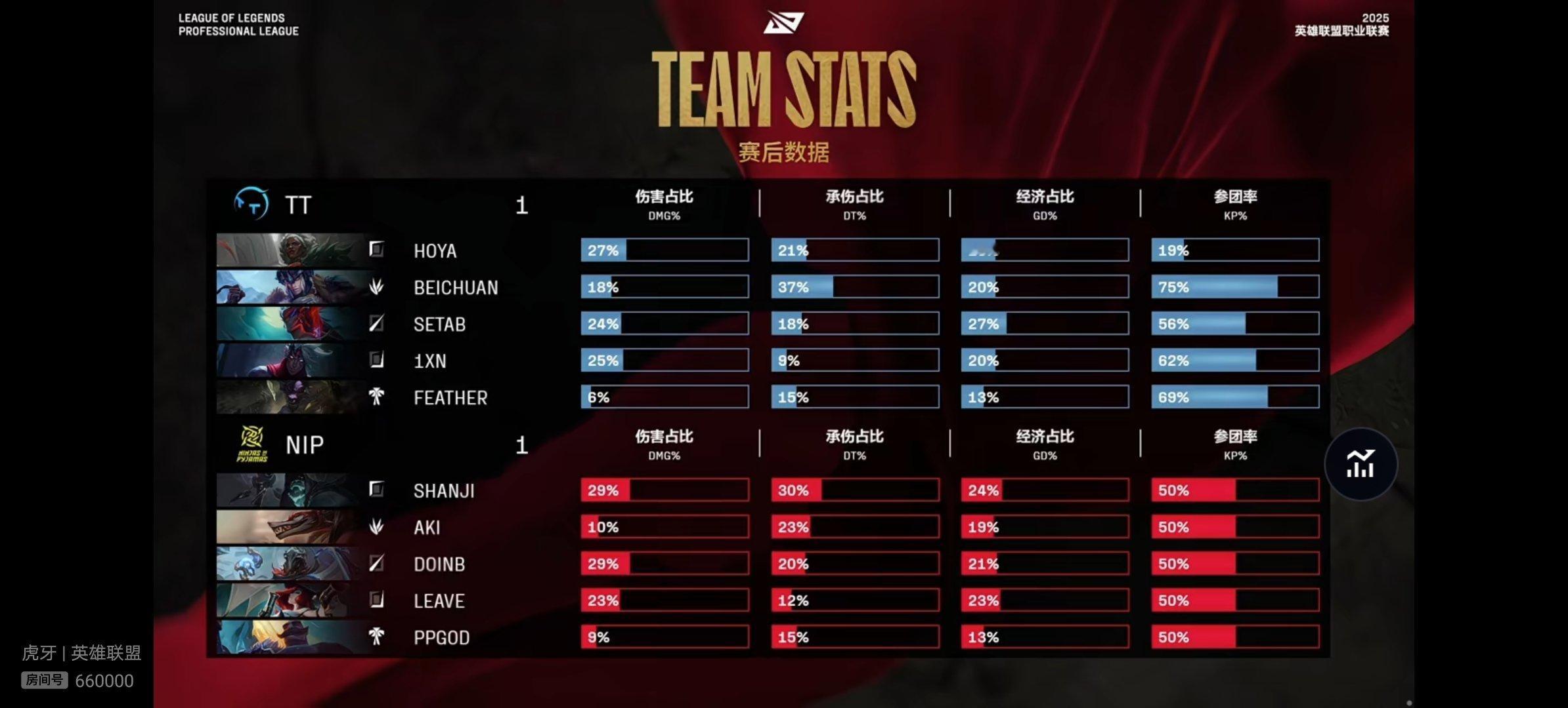 【2025lpl TT 1-1 NIP】双方本场比赛赛后数据如下TT对战NIP
