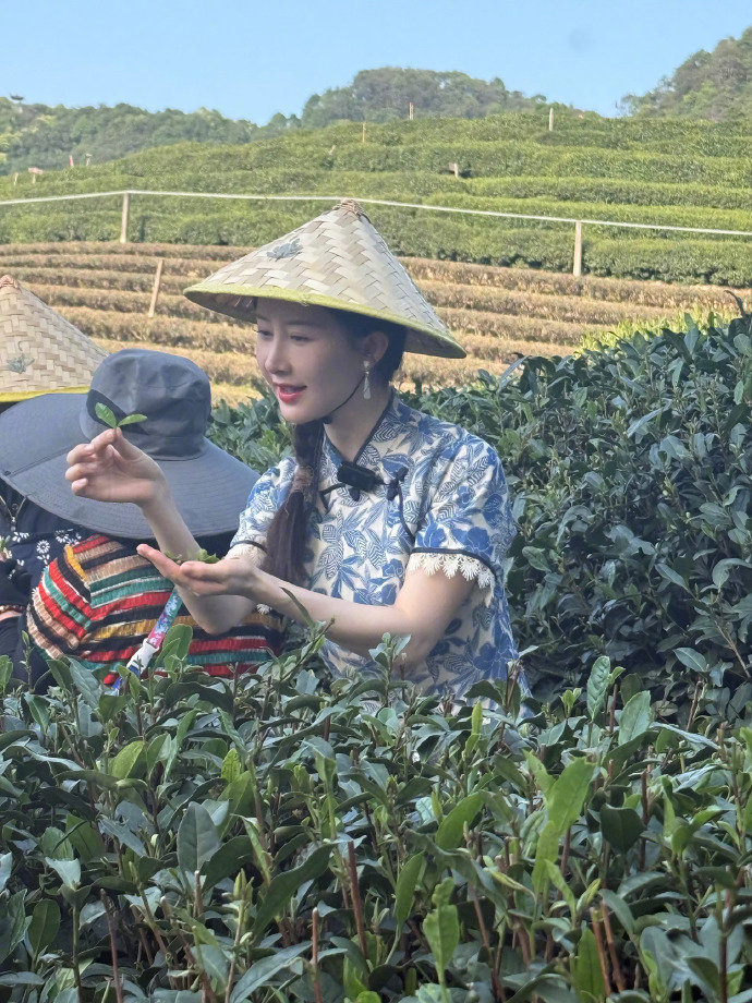 舒畅38岁状态舒畅茶田旗袍装 春游采茶,旗袍将姐姐的气质更好的凸显出来了,又清新又文艺,姐姐好美~[爱你]