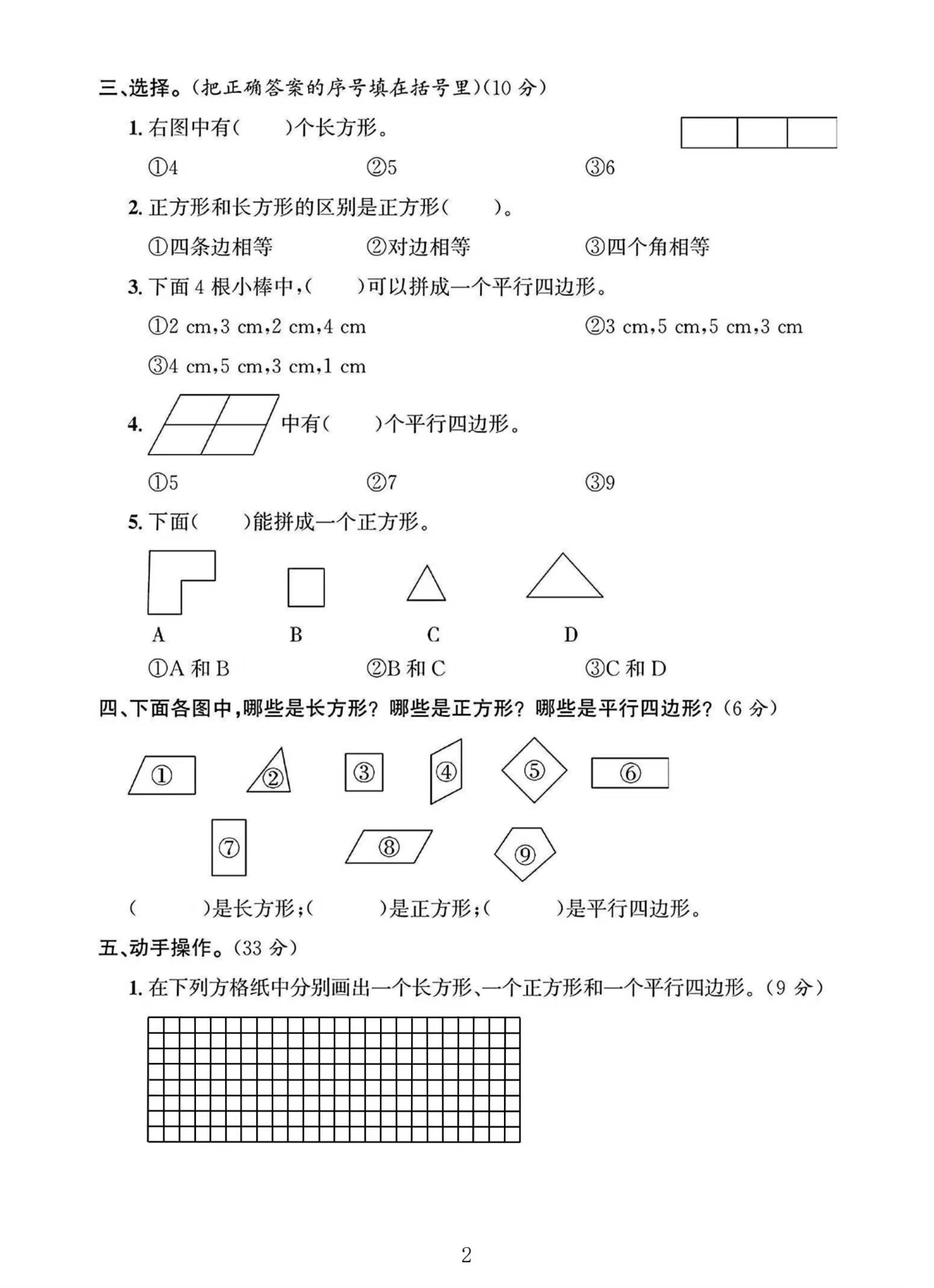 西师版二年级数学下册第四单元素养评估卷