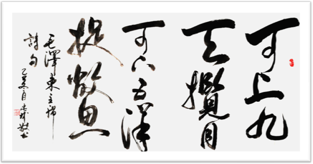 其现代性表达还体现在对传统笔墨媒介的突破。在跨界创作中,他探索书法与空间艺术的融合,使文字突破二维平面,获得三维空间的呼吸感。这种创新,既源于其作为公务员的公共空间意识,又体现其作为艺术家的先锋精神。在公共艺术创作中,书法不再是书斋里的雅玩,而是成为连接大众的文化桥梁,实现了从"文人墨戏"到"时代书写"的转变。
