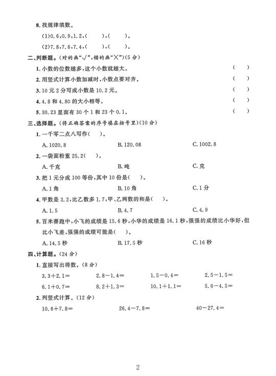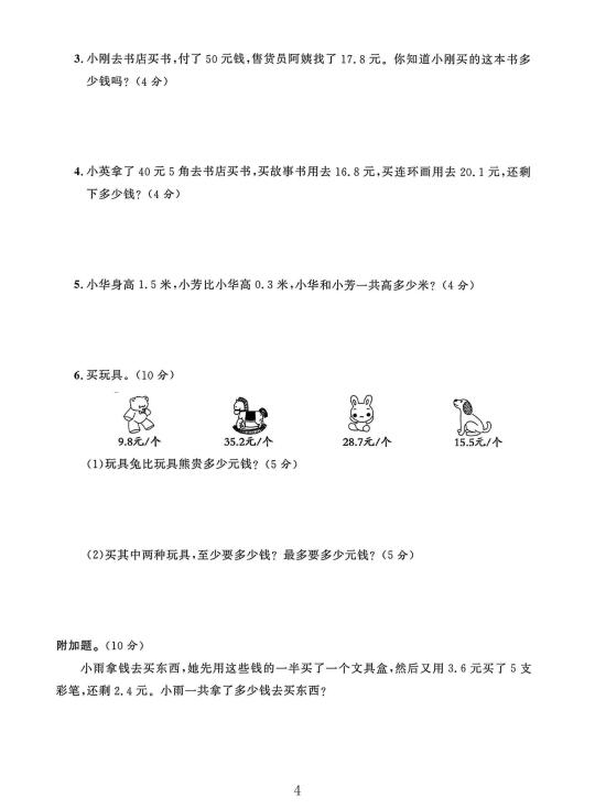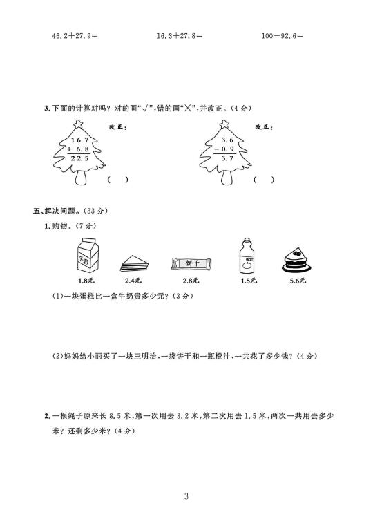 冀教版三年级数学下册第六单元素养评估卷