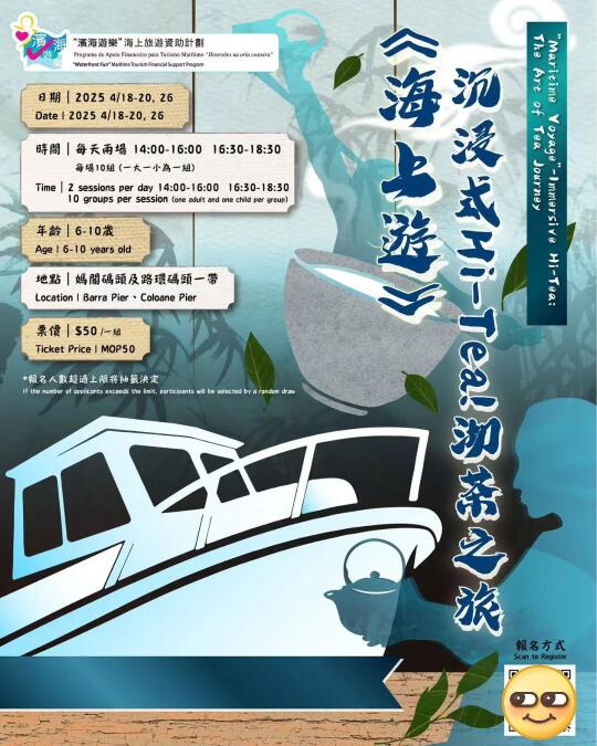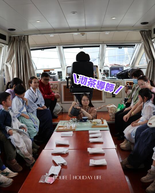 ⛴️ 古裝導遊帶你穿越時空 → 🍵 專業茶藝師講解 → ☕ 海上下午茶 → 抵達路環碼頭