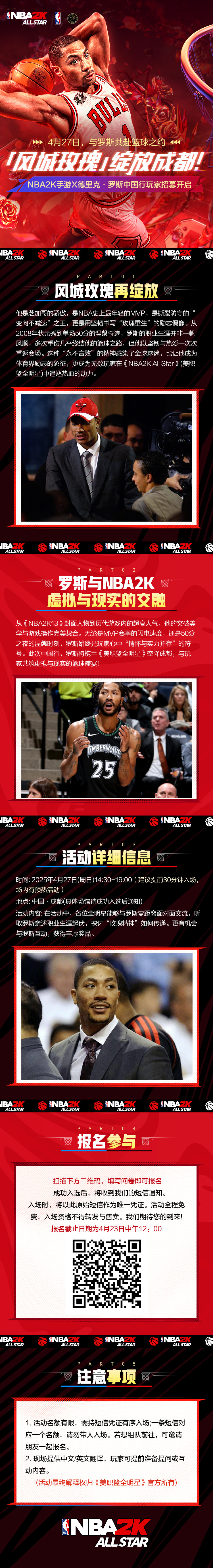 4月27日成都,前NBA球星将联手NBA2K手游,开启中国行玩家招募活动。在直播吧,有非常多的球迷一直在喜欢并支持着风城玫瑰,直播吧作为官方媒体合作伙伴,也为吧友们谋来了好福利!