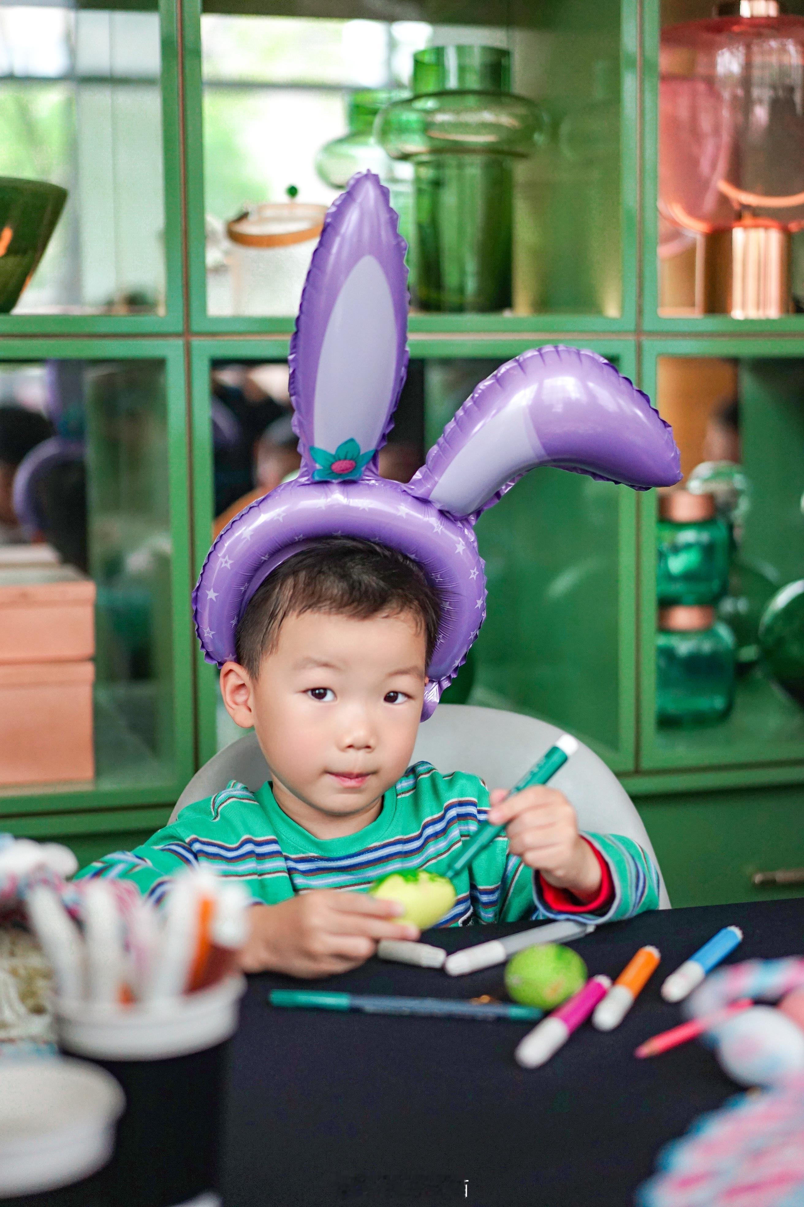明明宝贝化身成为一只小兔子,蹦蹦跳跳地开启了复活节的多彩之旅!