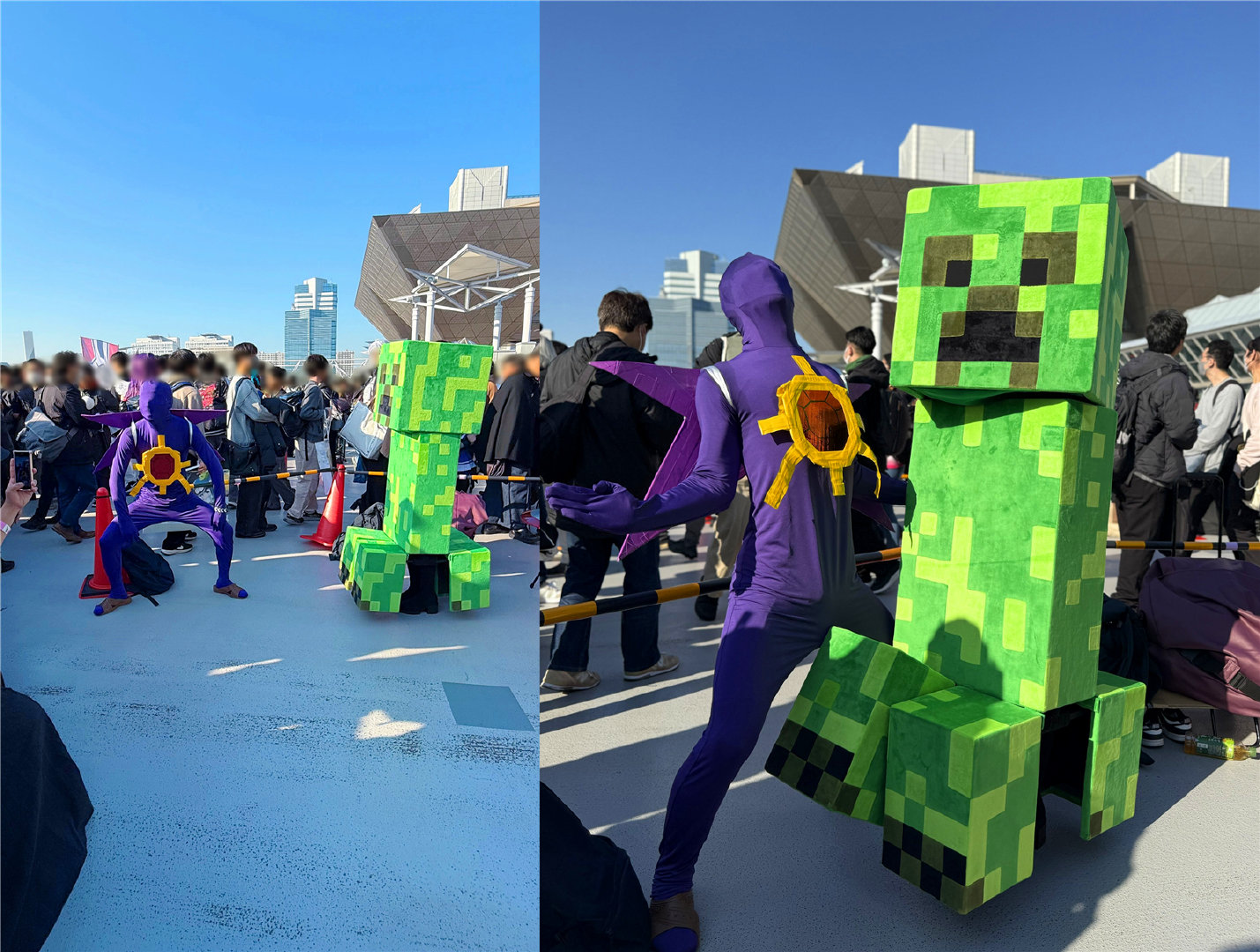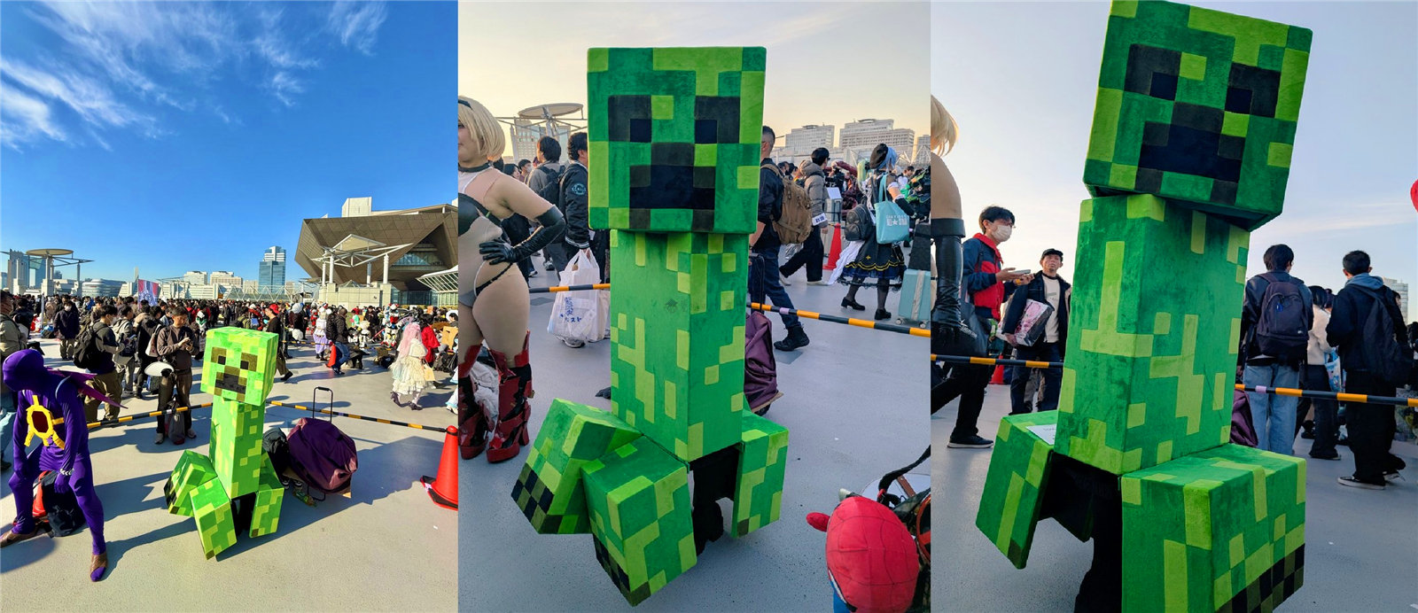 日本最大规模的同人场Comic Market(Comiket,C107)(12月30日-31日)目前正举办得如火如荼,涌入了大量人潮,Coser们自然不会放过这个展示自己的舞台,来自五湖四海的高手们集聚一堂,纷纷秀出了绝活。在让人眼花缭乱的各类作品中,有一个作品亮瞎了所有人的眼睛,来自日本大阪的“ぽち(社群ID为gs_pochi)的Coser带来了一套自制的《我的世界》苦力怕服装!