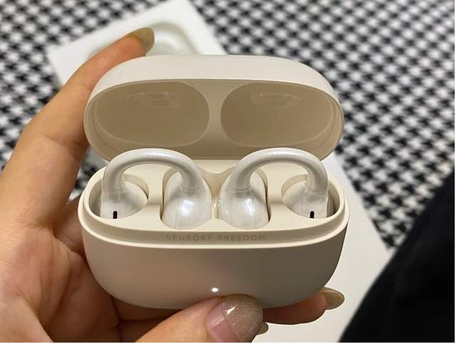 这款耳机在佩戴设计上挺花心思,用了有专利的多曲率软梁结构,能刚好贴合耳朵的轮廓,不会像有些耳机那样,戴久了耳后会有疼痛感。单只重量大概5.4克,拿在手里很轻巧,再加上小圆头的耳夹样式,我有时候一整天戴着它上班,耳朵也没觉得不舒服。