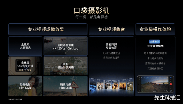 采用vivo最强四麦阵列式收音系统和全新定向收音算法,推出6大场景化收音预设。全新"专业录像模式"参考专业摄影机操控逻辑,兼顾利手性和沉浸式体验。