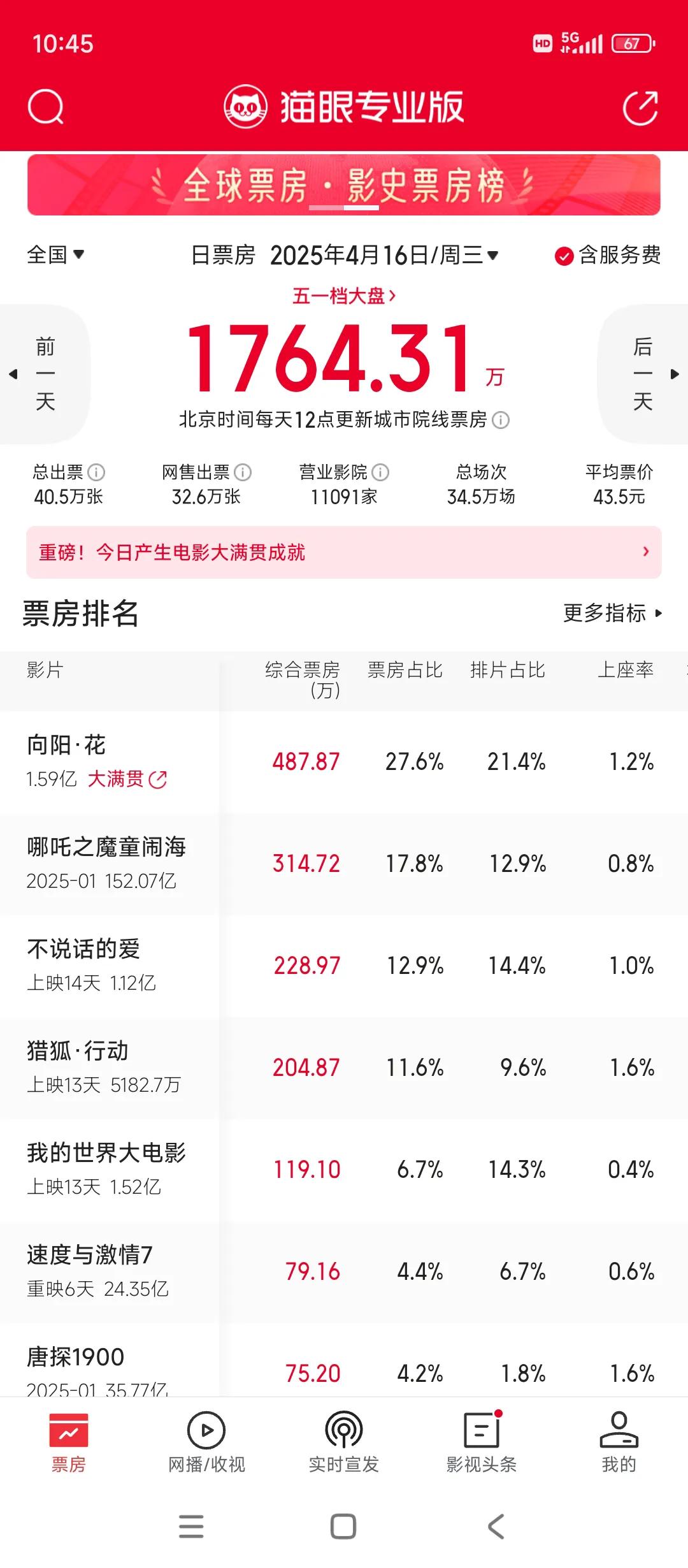 看看最近的电影市场 发现一个奇怪的现象 上周的票房冠军《向阳花》《我的世界》等等,也就四五百万票房 但是这周呢 春节档的电影,反而集体爆发 甚至《熊出没》《封神)》等等都在没有排片的情况下,票房越来越好 《哪吒》等也是 难道电影市场注水开始了[呲牙][大笑][大笑]