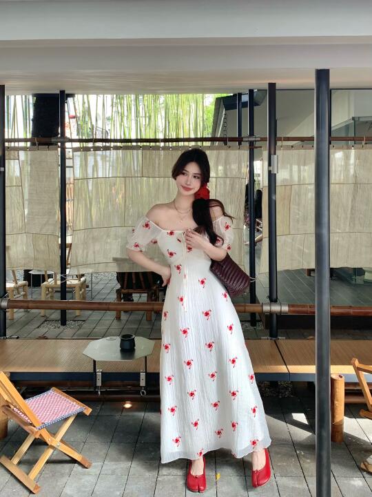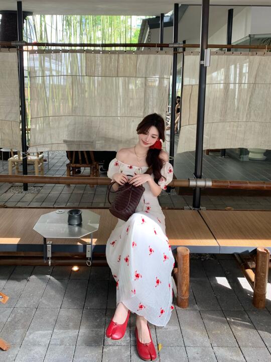 白月光连衣裙 一字肩连衣裙 度假裙 氛围感连衣裙