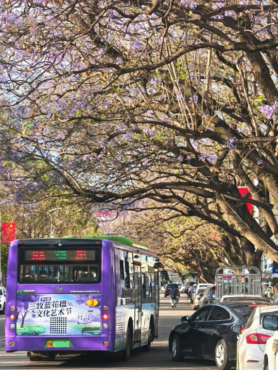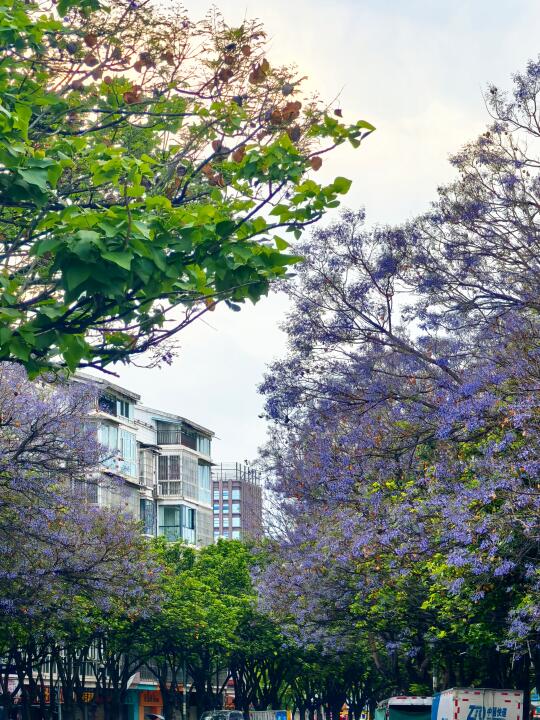 目前开的还没有太旺盛 预测今年盛花期🌸要到5月上旬中旬了。 📌点位1️⃣航天北路(图1️⃣到4️⃣) 导航腾云楼宾馆(长安中路店) 这里是最广为人知的西昌蓝花楹点位。有西昌网红紫色墙和网红路标。 强烈建议等紫色公交车经过,拍出来更加出片 📌点位2️⃣大昌小区(图5️⃣到6) 导航大昌小区北区北(航天路) 如果是这两天来更推荐这里看一下,这里的蓝花楹比航天北路开得更好更密集。 蓝花楹限定风味的酸奶一定要买!很好喝,冰淇淋不推荐!