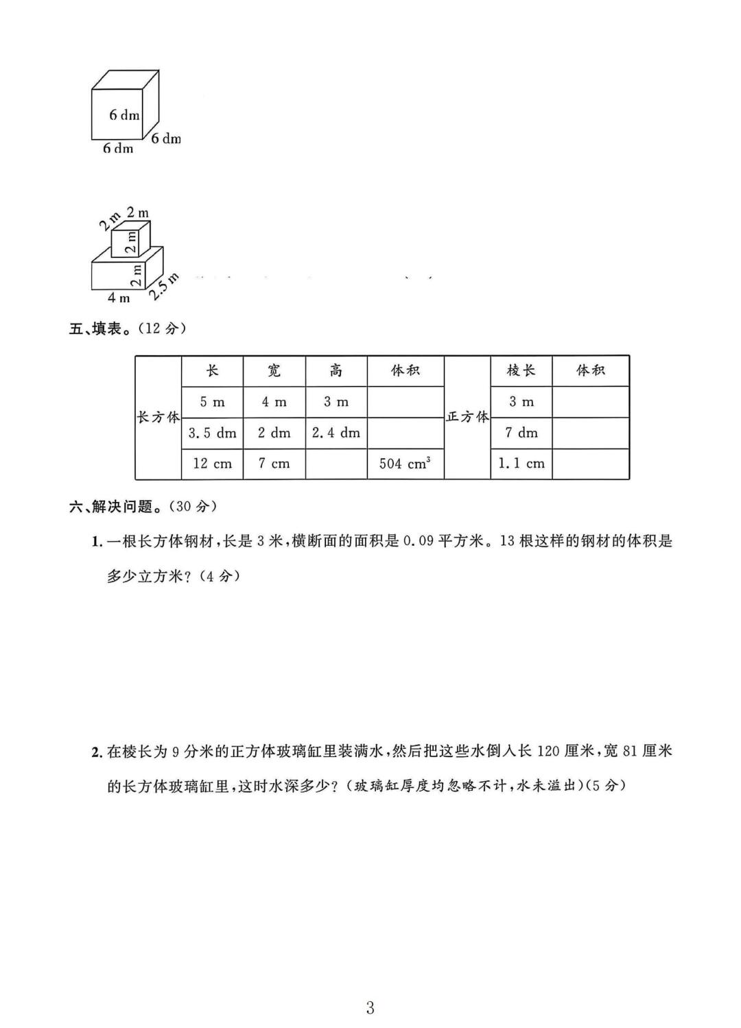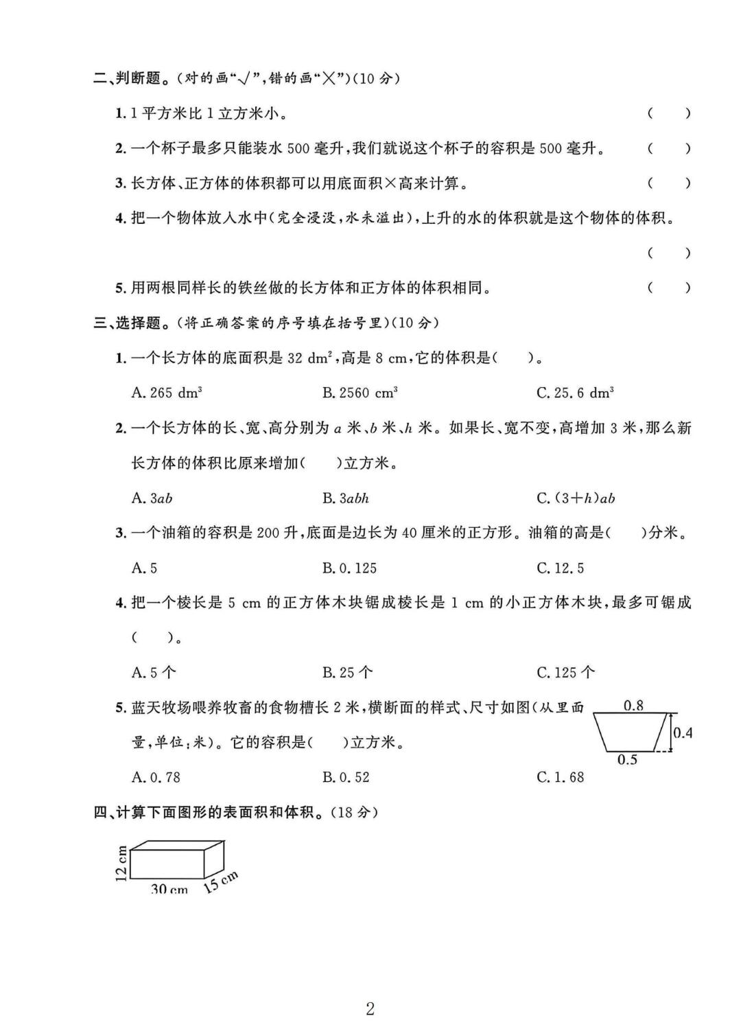 冀教版五年级数学下册第五单元素养评估卷
