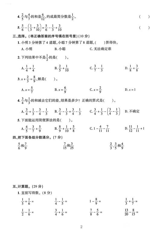青岛63版五年级数学下册第五单元素养评估卷