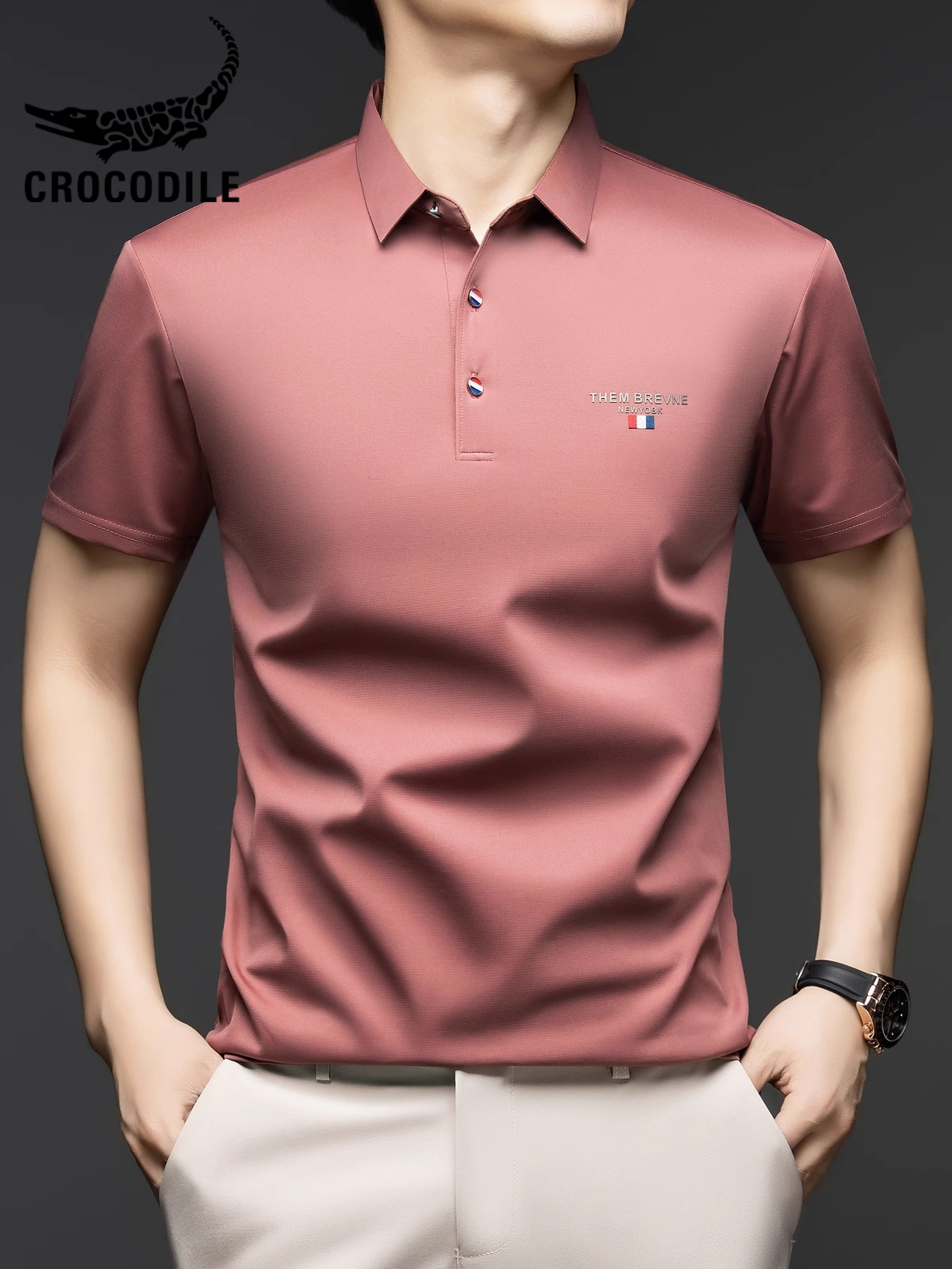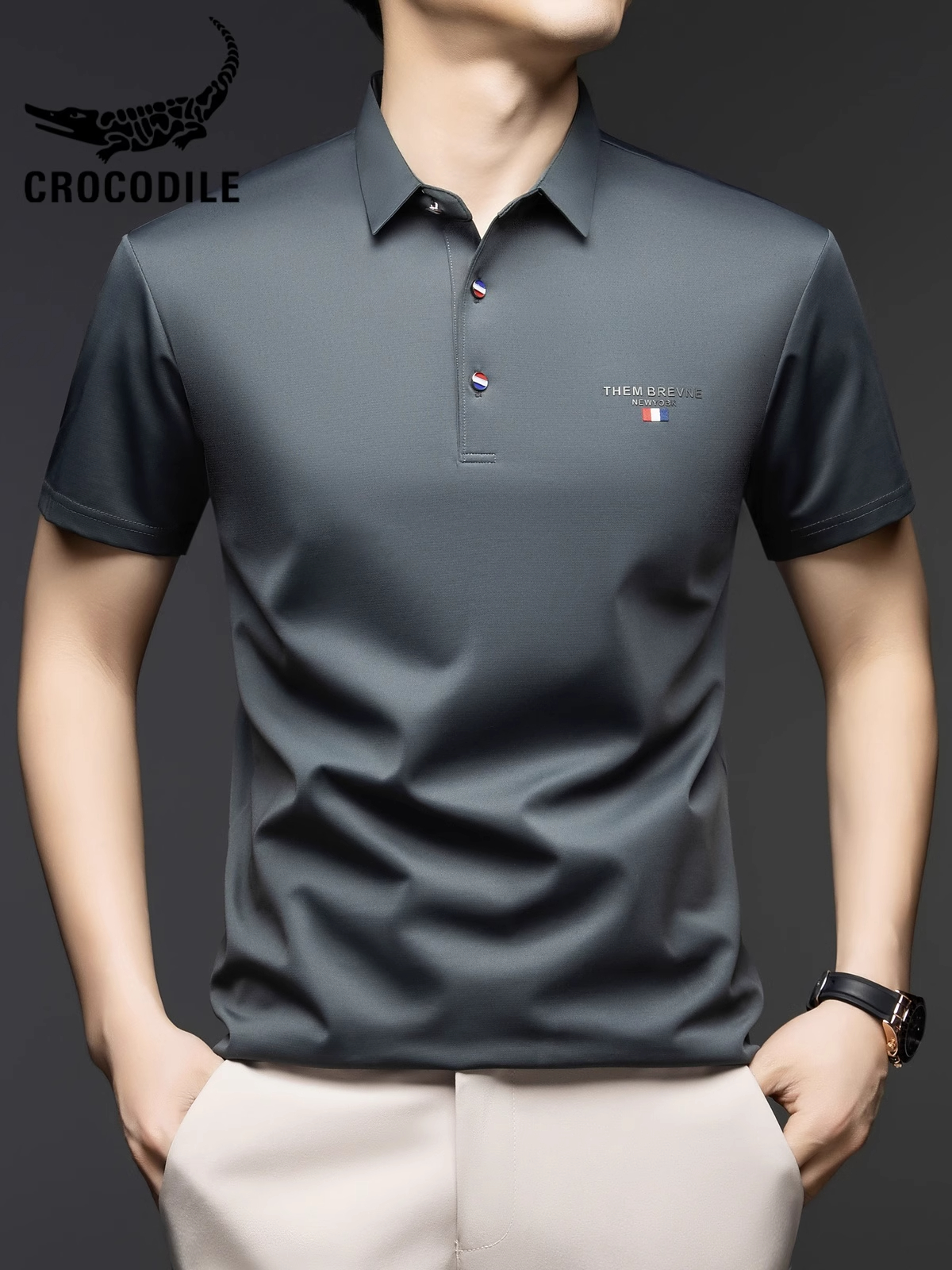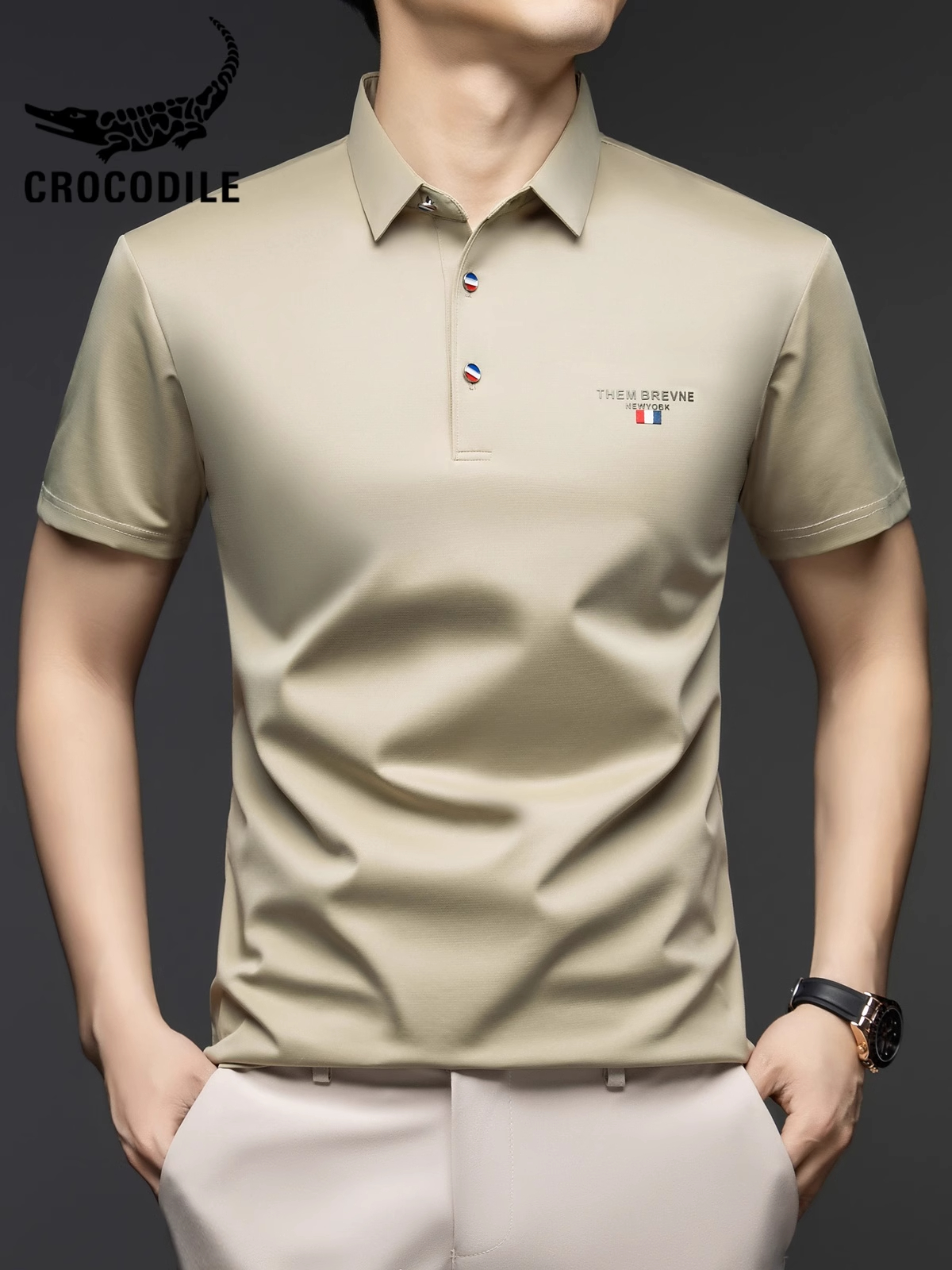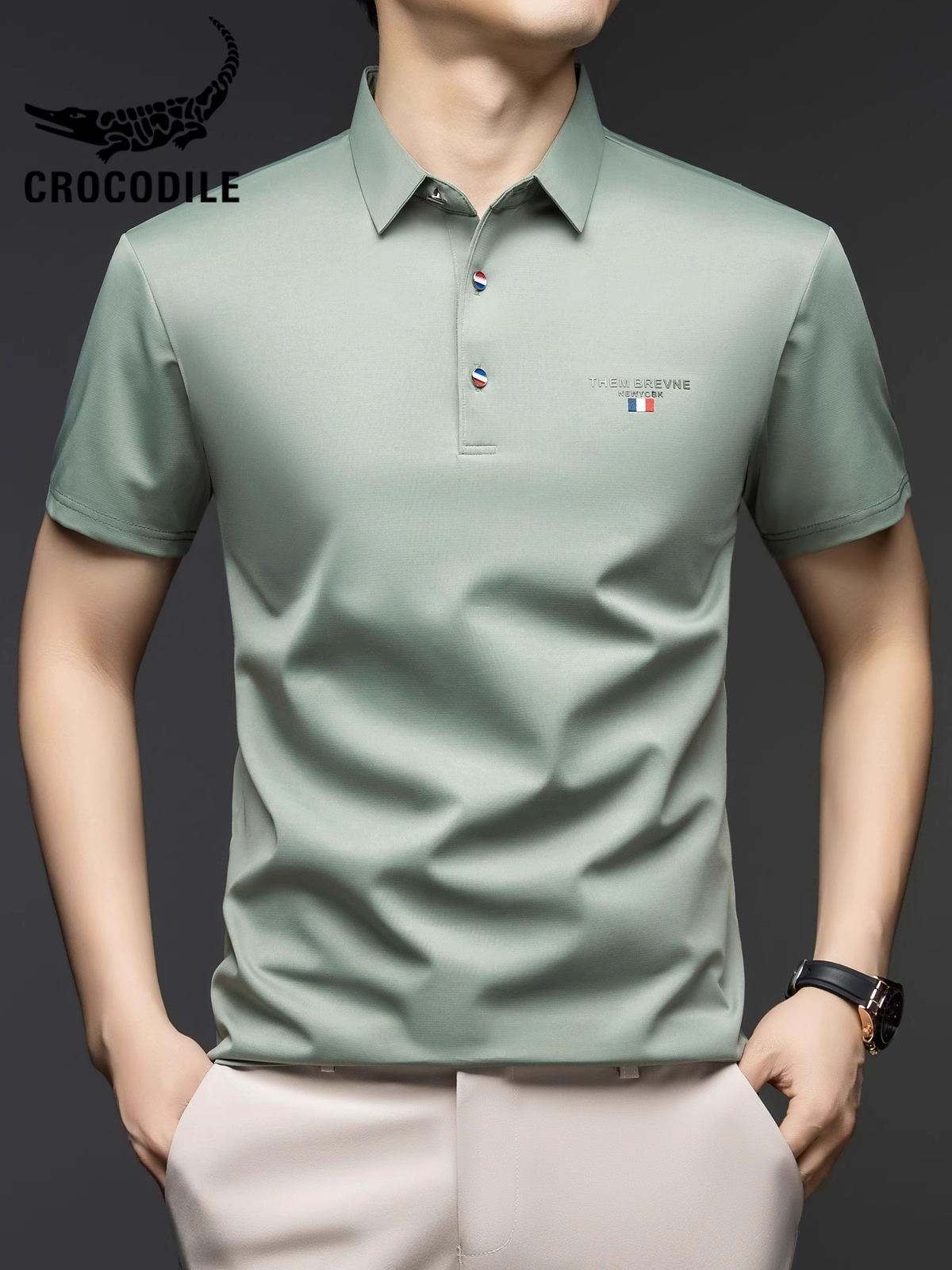 意大利新品桑蚕丝商务休闲短袖,透气轻盈,纯色新款polo衫,中年男士夏季首选,演绎商务与休闲的完美平衡。