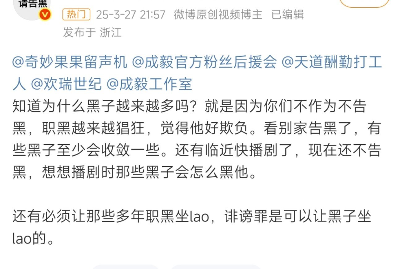 3月底成毅粉丝要求告黑,今日成毅工作室发布告黑通告。但是我没有看到深X王诶[汗]咋回事