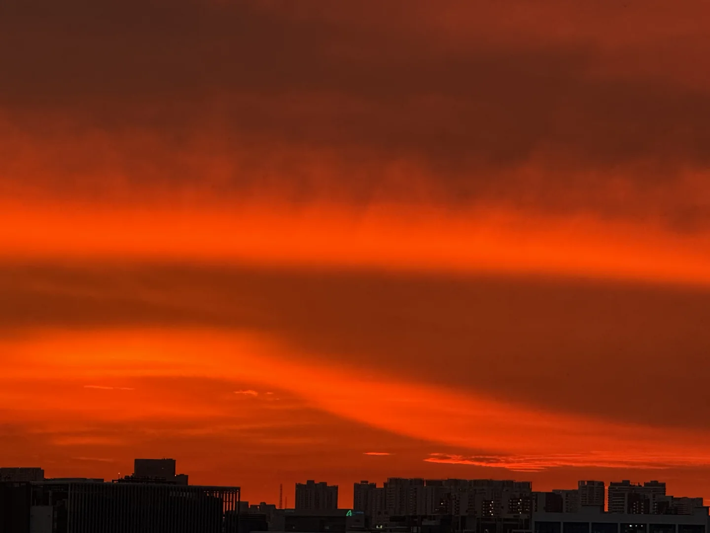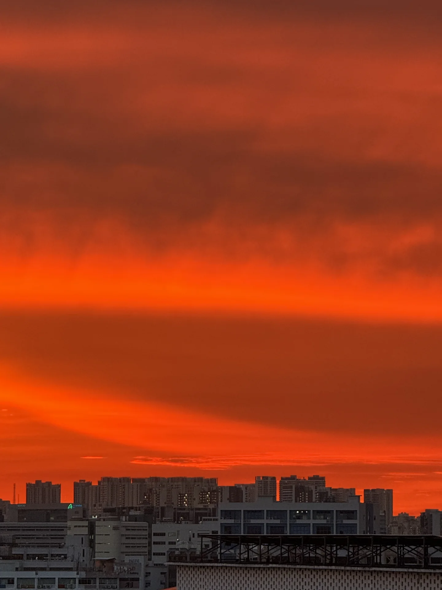 很少看见这么红的晚霞 太震撼了 整片天都被染红了… [哇R][哇R][哇R]