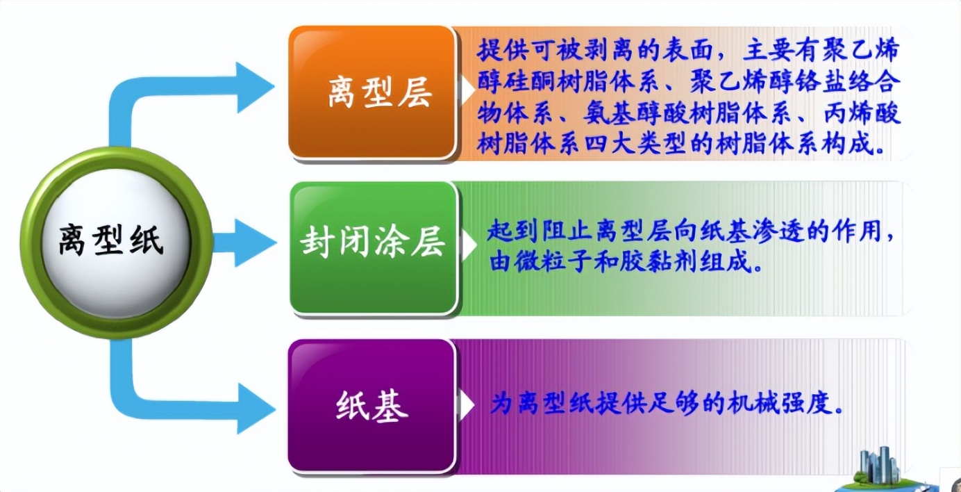 离型纸的供应链,材料涉及到原纸,离型剂,涂布厂,模切厂以及使用终端。